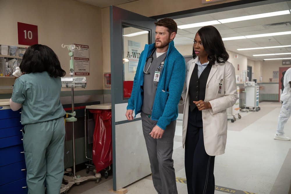 - "The Doctor's Graveyard" Episode 206 — Pictured: (l-r) Tamberla Perry as Dr. Carol Pierce, Alex MacNicoll as Dr. Van Markus — (Photo by: Pief Weyman/NBC)