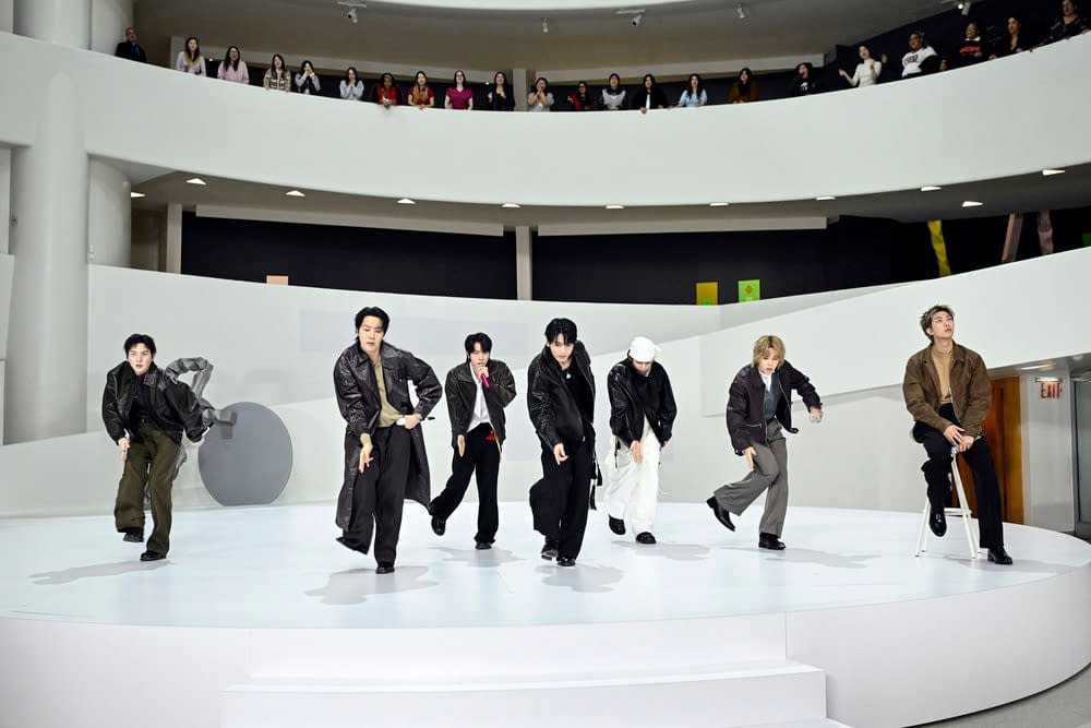 On Thursday, RM, Jin, SUGA, j-hope, Jimin, V, and Jung Kook returned for their second night on NBC's The Tonight Show with Jimmy Fallon, which meant a return to NYC's Guggenheim Museum. For this go-around, BTS offers a performance of "2.0" – and we have that waiting for you above. In addition, we have the official images below, followed by a look back to Wednesday night and more.