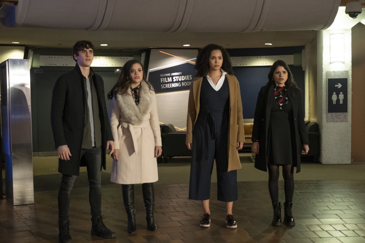 - Charmed — "Manic Pixie Nightmare" — Image Number: CMD113a_0351.jpg — Pictured (L-R): Nick Hargrove as Parker, Sarah Jeffery as Maggie, Madeleine Mantock as Macy and Melonie Diaz as Mel — Katie Yu/The CW — é 2019 The CW Network, LLC. All Rights reserved.