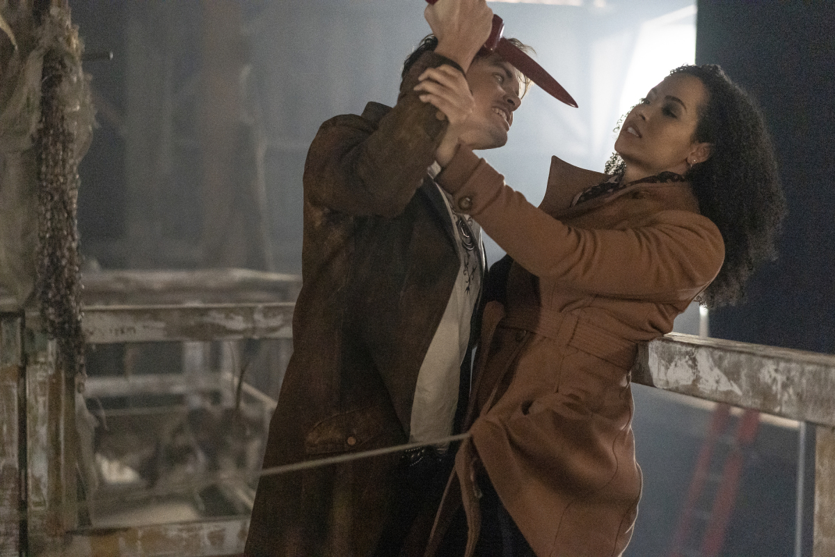 - Charmed — "Surrender" — Image Number: CMD117b_0066.jpg — Pictured (L-R): Tyler Blackburn as Viralis and Madeleine Mantock as Macy — Photo: Colin Bentley/The CW — é 2019 The CW Network, LLC. All rights reserved.
