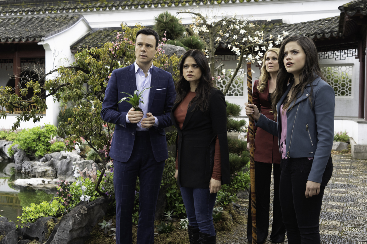 - Charmed — "Red Rain" — Image Number: CMD121a_0279.jpg — Pictured (L-R): Rupert Evans as Harry, Melonie Diaz as Mel, Virgina Williams as Charity and Sarah Jeffery as Maggie — Photo: Colin Bentley/The CW — é 2019 The CW Network, LLC. All rights reserved.