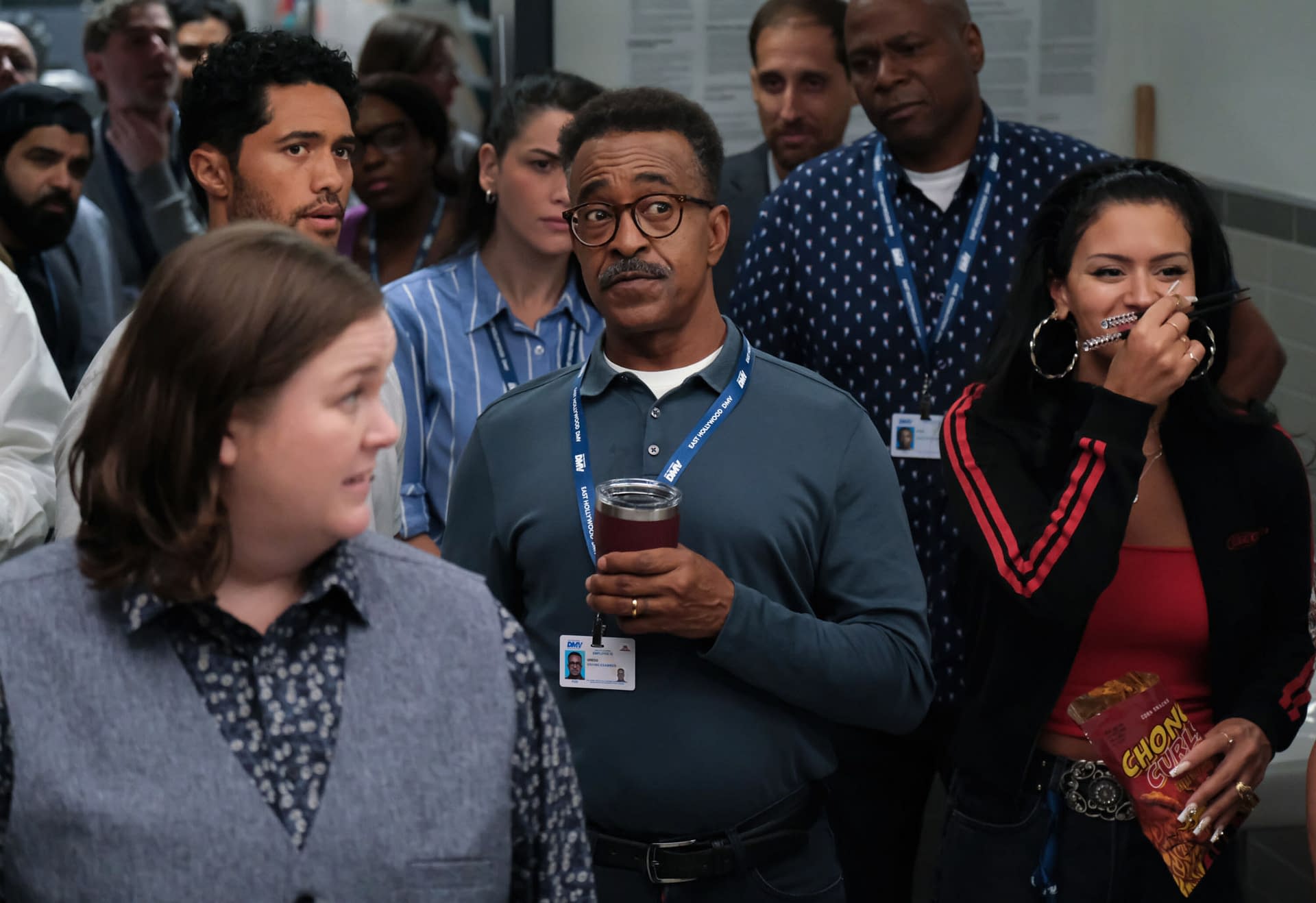 - Pictured (L-R): Chance Jones as Security Guard, Molly Kearney as Barbara, Alex Tarrant as Noa, Tim Meadows as Gregg, Gigi Zumbado as Jocelyn, and Tony Cavalero as Vic. Photo: Bertrand Calmeau/CBS ©2024 CBS Broadcasting, Inc. All Rights Reserved.