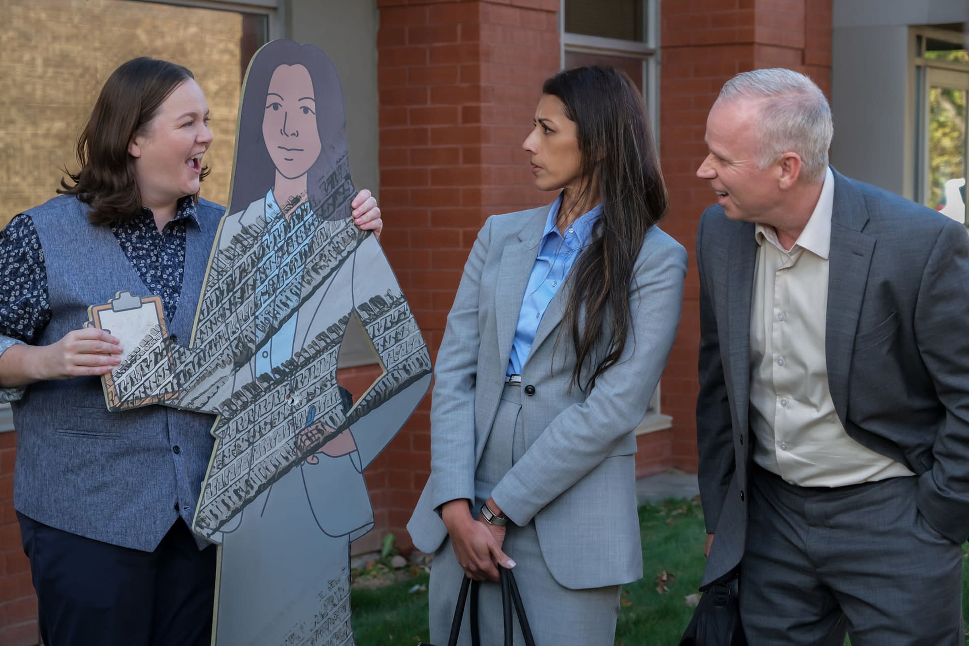 - Pictured (L-R): Molly Kearney as Barbara, Gerry Dee as Dan, and Reshma Shetty as Kshitija. Photo: Bertrand Calmeau/CBS ©2024 CBS Broadcasting, Inc. All Rights Reserved.