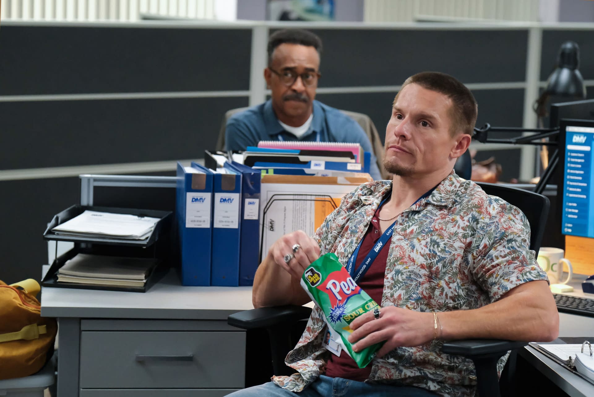 Based on award-winning author Katherine Heiny's short story, CBS's Harriet Dyer, Tim Meadows, Tony Cavalero, Molly Kearney, Gigi Zumbado, and Alex Tarrant-starring DMV could very well be our next favorite comedy. Set exactly where you would think based on the title, the team deals with making minimum wage and doing a thankless job where customers are annoyed before they even walk in the door. Luckily, they have each other to lean on. Personally, they had us at "Tim Meadows" (who's killing it over on HBO Max's Peacemaker Season 2). Here's a look at the official overview and image gallery for the series opener, along with a trailer and series overview: