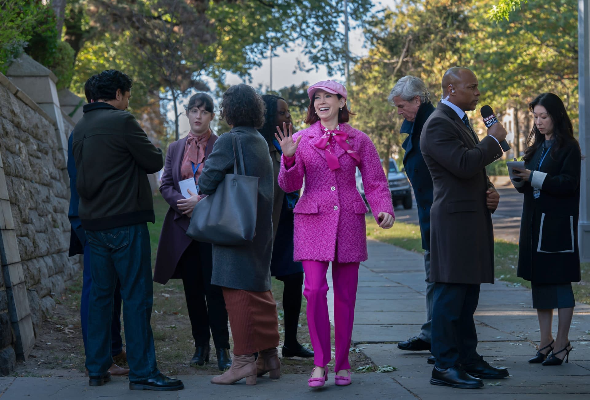The third season also sees David Cross (Mr. Show, Arrested Development) guest-starring as Nolan, a hapless insider trader fresh from a stint in prison who winds up taking hostages in one of New York's best toy stores after the purchase of a rare doll on the black market turns deadly. Julia Fox (Uncut Gems, Adults) guest-stars as Raquel Drabowski, a Staten Island widow who transformed herself into an upscale NYC "Grief Influencer" and reality star on the hit dating series Black Veil. William Jackson Harper (The Good Place) and Annaleigh Ashford (Happy Face) will guest star this season. Ashford is set for a special Halloween-themed episode as Sharon Norman, a murderous suburban housewife. Meanwhile, Harper will portray the founding director of a New York City poetry journal, desperate for funding. Fans of "The Good Wife/The Good Fight" universe can also look forward to Sarah Steele's Marissa Gold reuniting with our lead for the Season 3 episode "Poetic Justice." For this go-around, Gold is now a campaign manager for NYC mayoral candidate Alec Bloom (Ivan Hernandez).