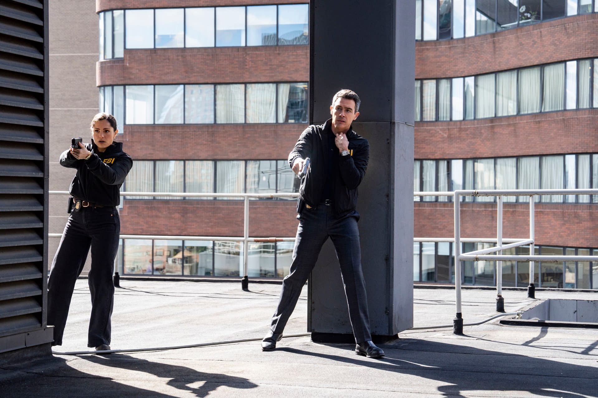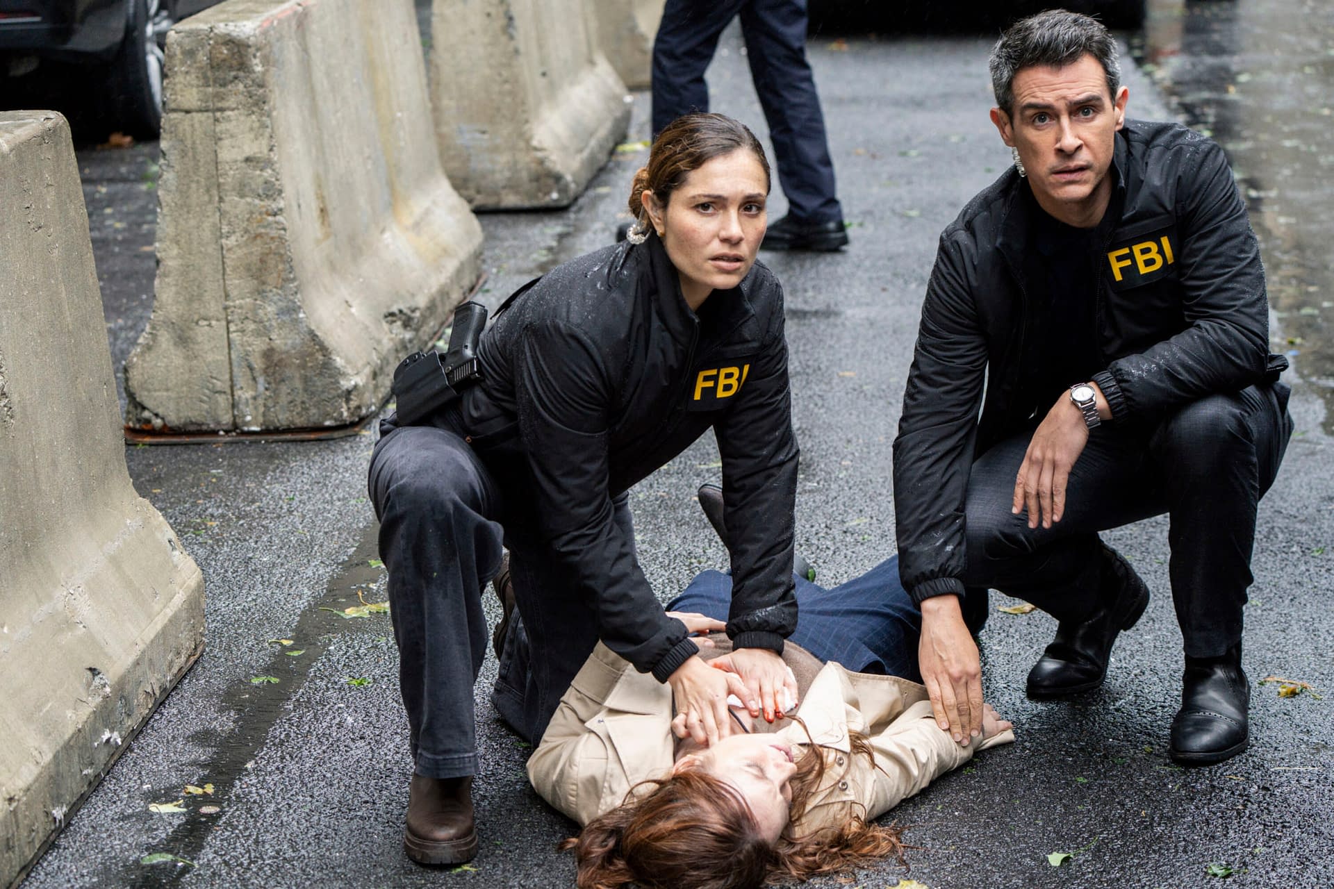 Produced by Universal Television, a division of Universal Studio Group, in association with Wolf Entertainment and CBS Studios, CBS's FBI stars Missy Peregrym (Special Agent Maggie Bell), Zeeko Zaki (Special Agent Omar Adom "OA" Zidan), Jeremy Sisto (Assistant Special Agent in Charge Jubal Valentine), Alana De La Garza (Special Agent in Charge Isobel Castille), John Boyd (Special Agent Stuart Scola), and Juliana Aidén Martinez (Special Agent Eva Ramos). Executive producers include Dick Wolf, Mike Weiss, Alex Chapple, Amanda Slater, Rick Eid, and Peter Jankowski.
