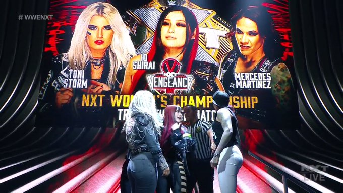- Io Shirai will defend the NXT Women's Championship against Toni Storm and Mercedes Martinez in a triple thread match at NXT Takeover Vengeance Day.