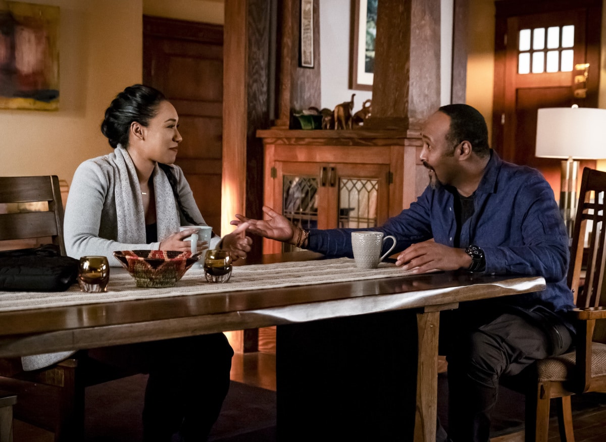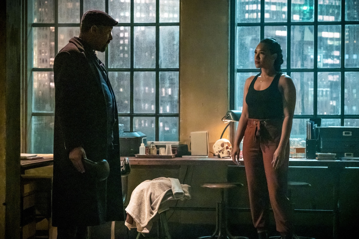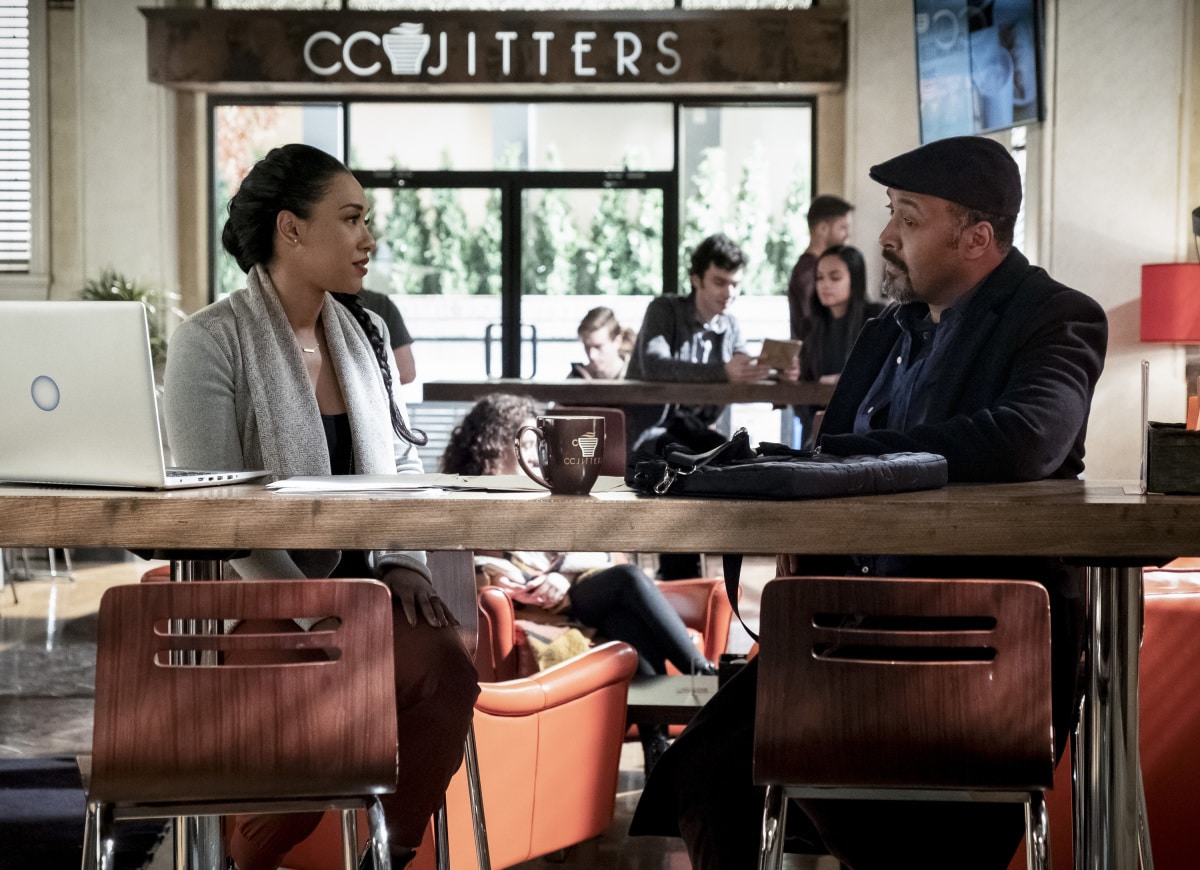 - The Flash — "King Shark vs. Gorilla Grodd" — Image Number: FLA515a_0079b.jpg — Pictured (L-R): Candice Patton as Iris West – Allen and Jesse L. Martin as Detective Joe West — Photo: Katie Yu/The CW — é 2019 The CW Network, LLC. All rights reserved