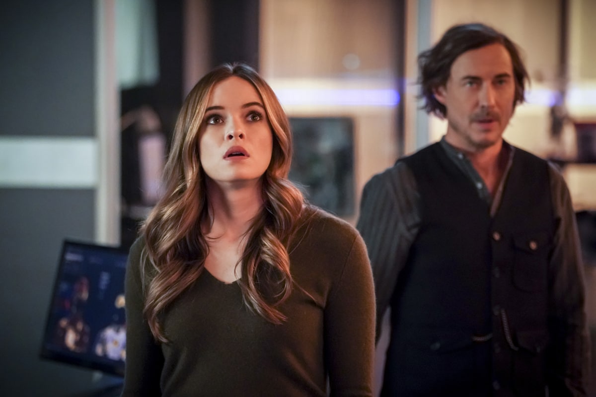 - The Flash — "King Shark vs. Gorilla Grodd" — Image Number: FLA515b_0202b.jpg — Pictured (L-R): Danielle Panabaker as Caitlin Snow and Tom Cavanagh as Sherloque Wells — Photo: Shane Harvey/The CW — é 2019 The CW Network, LLC. All rights reserved