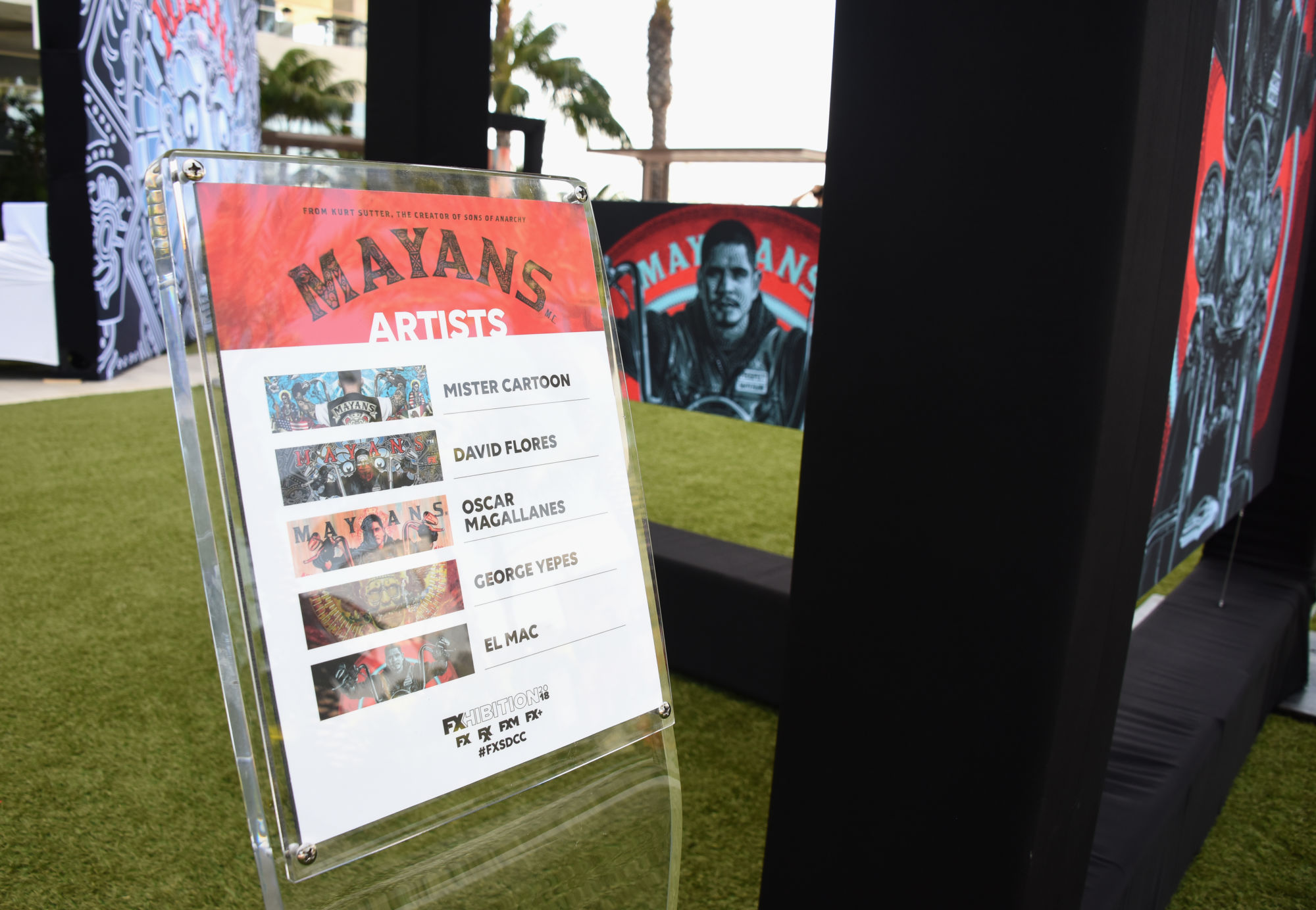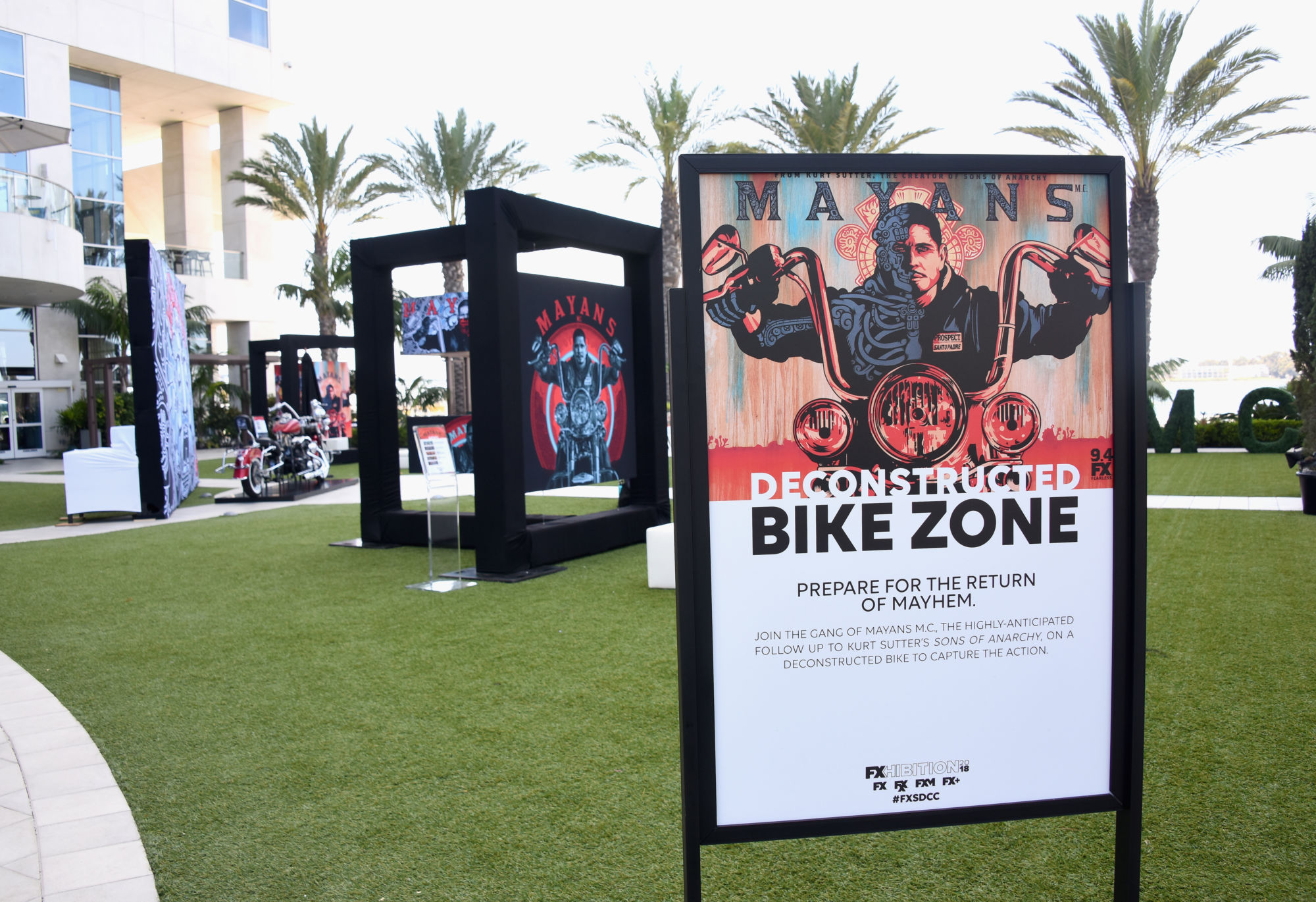· MAYANS M.C. Deconstructed Bike Zone: The ultimate photo-op for biker fans. The deconstructed motorcycle is a bold display to introduce Mayans M.C., the highly-anticipated series from Kurt Sutter, creator of Sons of Anarchy. It will also feature a gallery of other acclaimed artists' takes on the new series, including El Mac, David Flores and Oscar Magallanes.