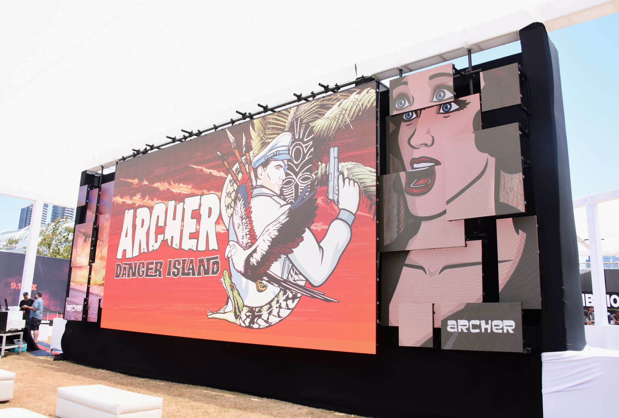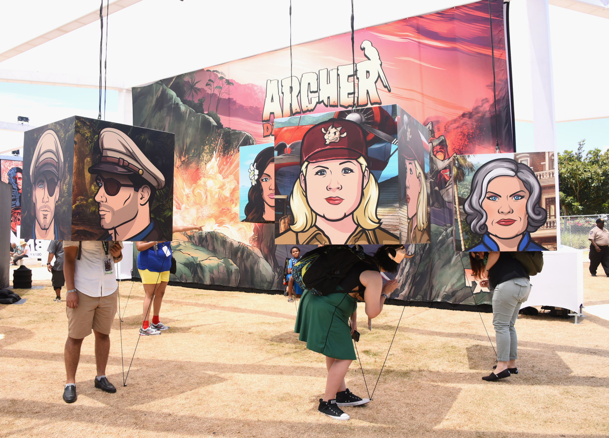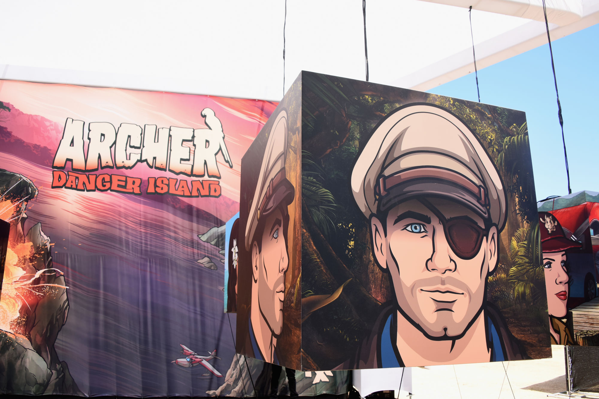 · ARCHER Sound Boxes: Fans will have a once-in-a-lifetime opportunity to get inside the heads of their favorite Archer characters with this whimsical installation by capturing a photo of themselves inside suspended sound boxes adorned with character art. Each sound box features classic sound bites from the show.