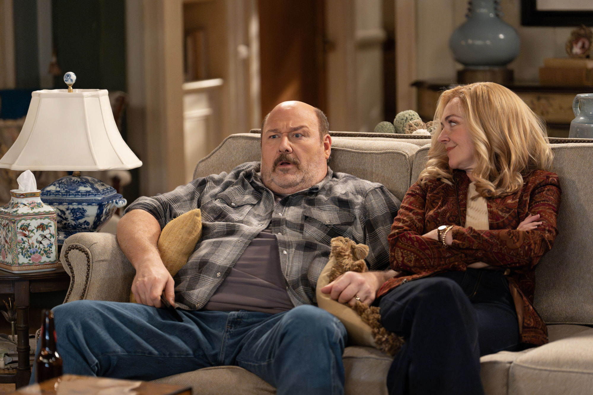 Georgie & Mandy's First Marriage Season 2 Episode 16: "Alpha Males and the Power of Prayer" – Mandy tries to make things right with Pastor Jeff (Matt Hobby) when she learns her controversial comments have hurt the tire store's business. Meanwhile, Jim and Audrey butt heads over Connor's allowance. Story by Steve Holland & Connor Kilpatrick, with a teleplay by Steven Molaro & Nadiya Chettiar. Mark Cendrowski directs.