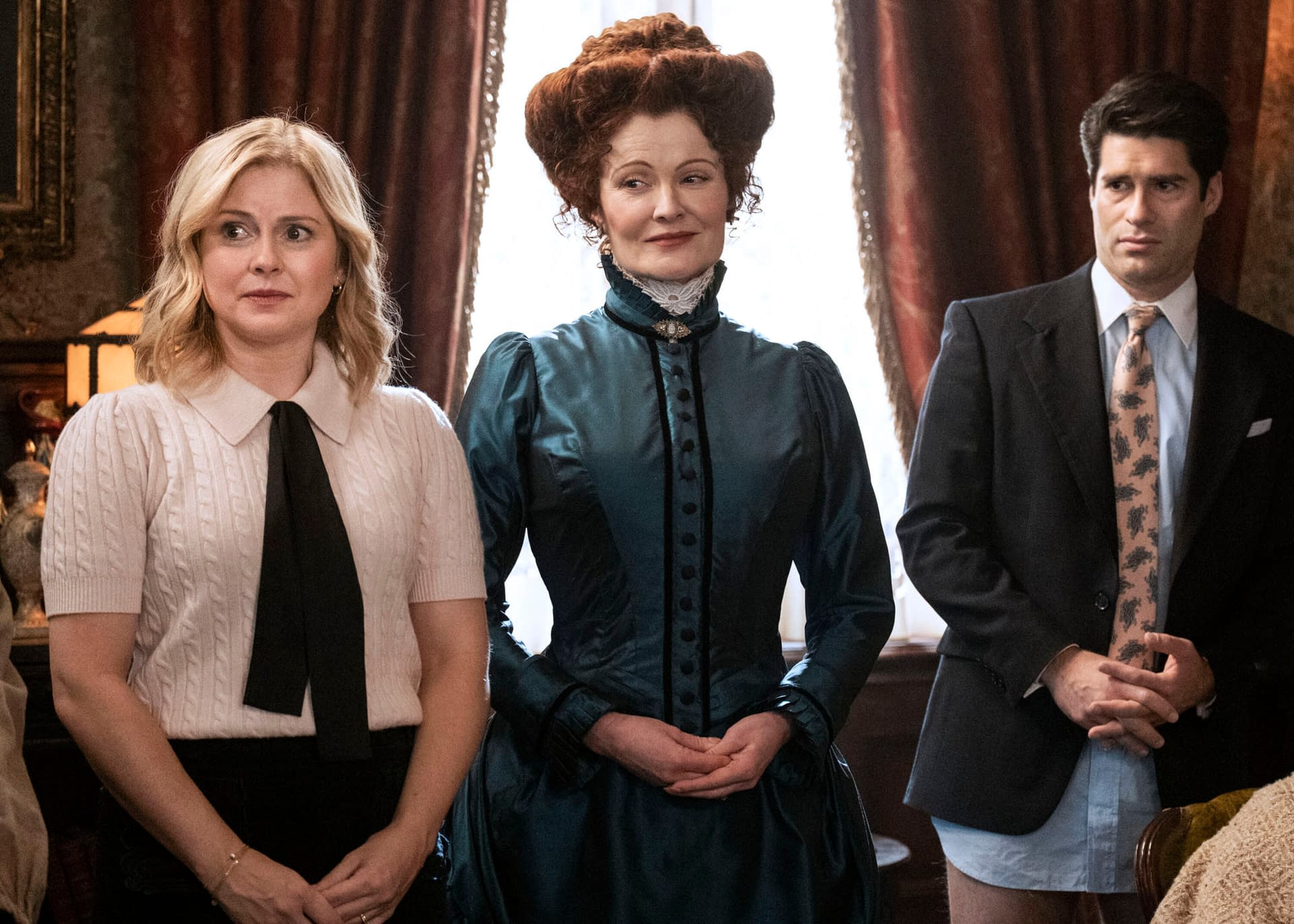 - "The Water Heater" – CBS Original Series GHOSTS, airing Thursday, April 2 (9:30-10:00 PM, ET/PT) Pictured L to R: Rose McIver as Samantha, Rebecca Wisocky as Hetty and Asher Grodman as Trevor. Photo: Bertrand Calmeau/CBS ©2025 CBS Broadcasting, Inc. All Rights Reserved.