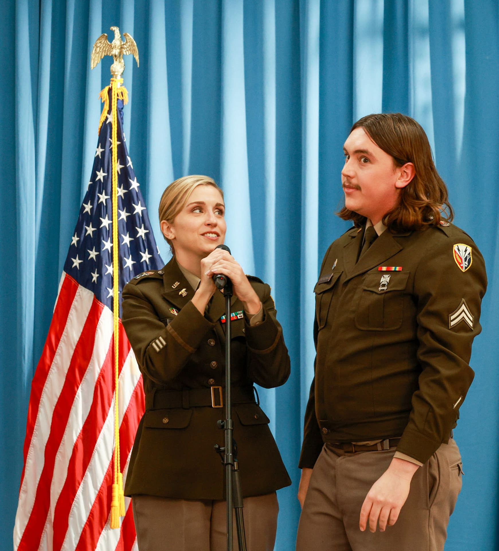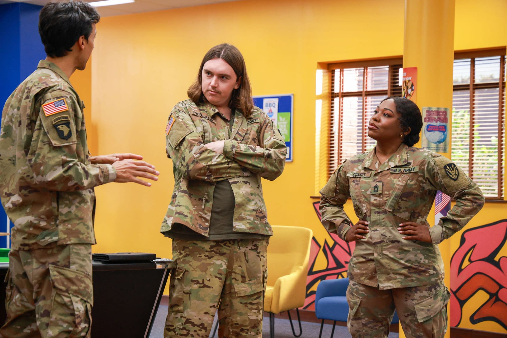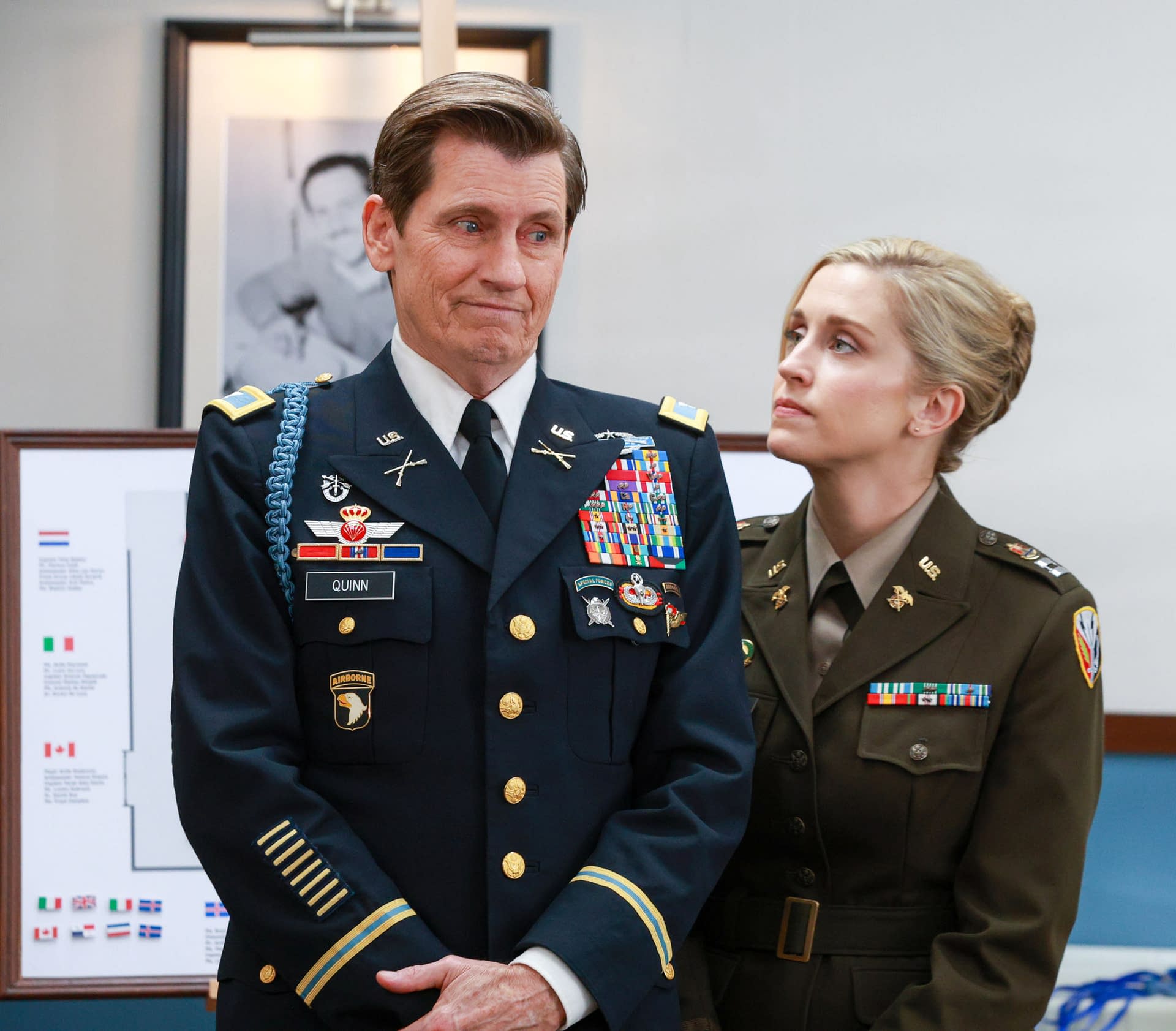 We've got a whole lot of shows returning from their respective breaks this Thursday, and that includes FOX and Showrunners Joel Church-Cooper & Hilary Winston's Denis Leary and Taylor Misiak-starring military comedy Going Dutch. This week, S02E09: "Apache Helicopter Parent" sees Captain Maggie (Misik) going from handing out cheese to being responsible for Stroopsdorf's first-ever peace talks – all "thanks" to The Colonel (Leary). In addition to a look at the official overview and images for tonight's return episode, we also have an early look at S02E10: "Heart Locker" and S02E11: "General Dearest" (where it looks like some serious love is in the air).