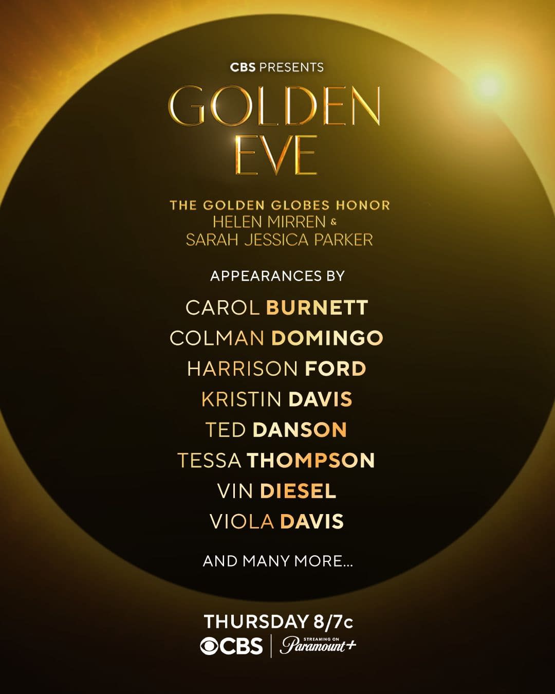With the big awards ceremony set to hit screens this Sunday, CBS and the Golden Globes are kicking off the party early with Golden Eve: The Golden Globes Honor Helen Mirren & Sarah Jessica Parker. Kicking off tonight at 8 pm ET/PT on CBS and Paramount+ in the U.S., the one-hour special will honor Helen Mirren, recipient of the 2026 Cecil B. DeMille Award, and Sarah Jessica Parker, recipient of the 2026 Carol Burnett Award, ahead of the 83rd Annual Golden Globes. Here's a look at who is set to present, what you should know about Mirren's and Parker's respective work, a trio of sneak peeks, and more.