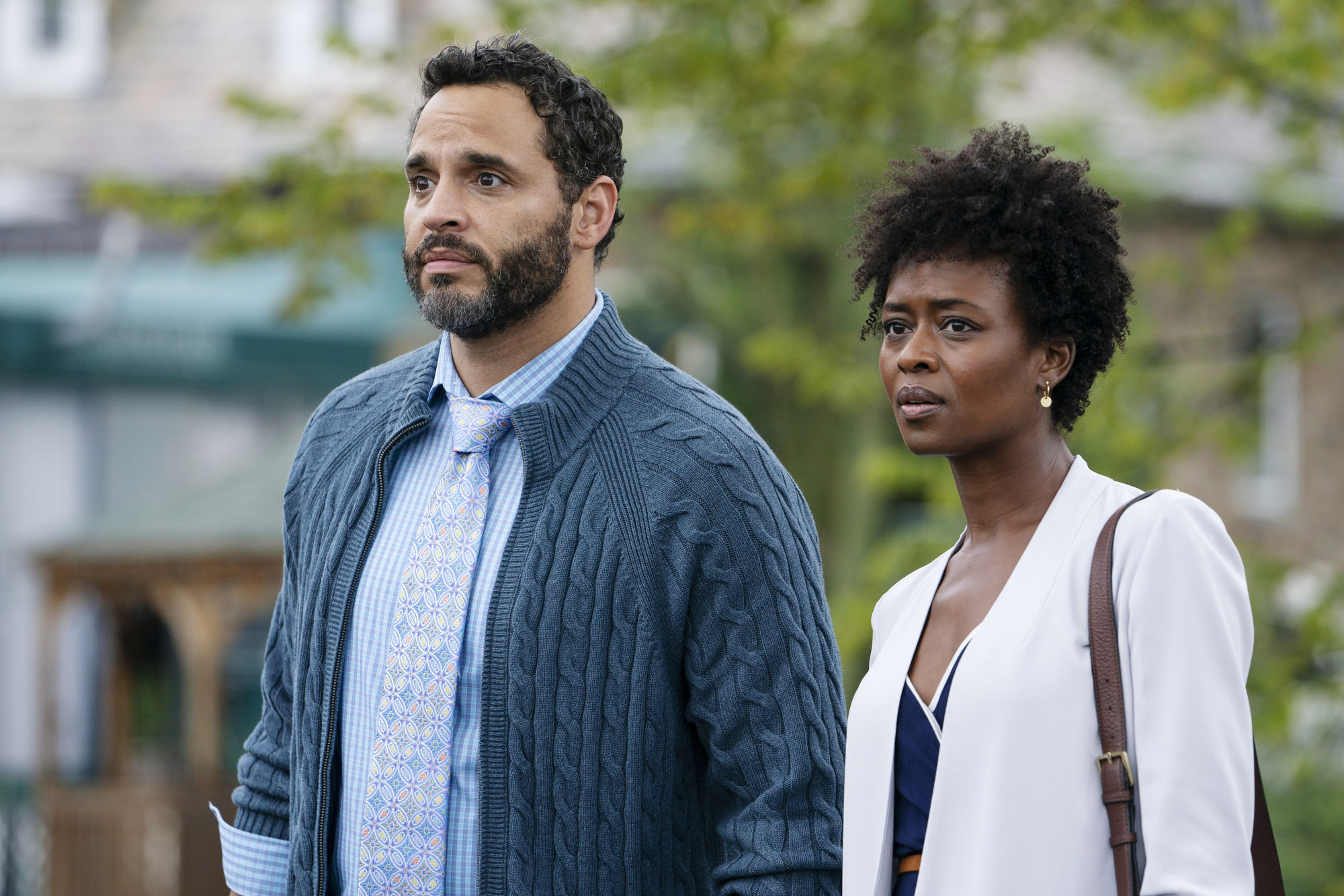 - HAPPY! — "Blitzkrieg!!!" Episode 204 — Pictured: (l-r) Daniel Sunjata as Simon, Medina Senghore as Amanda Hansen — (Photo by: Peter Kramer/SYFY)
