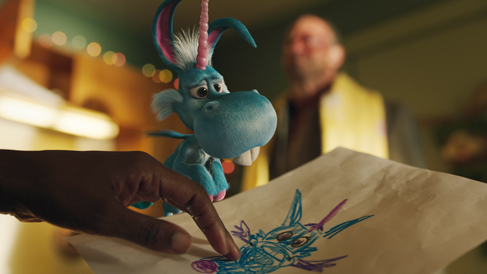 - HAPPY! — "Five Chicken Fingers and a Gun" Episode 209 — Pictured: Patton Oswald as Happy! — (Photo by: SYFY)
