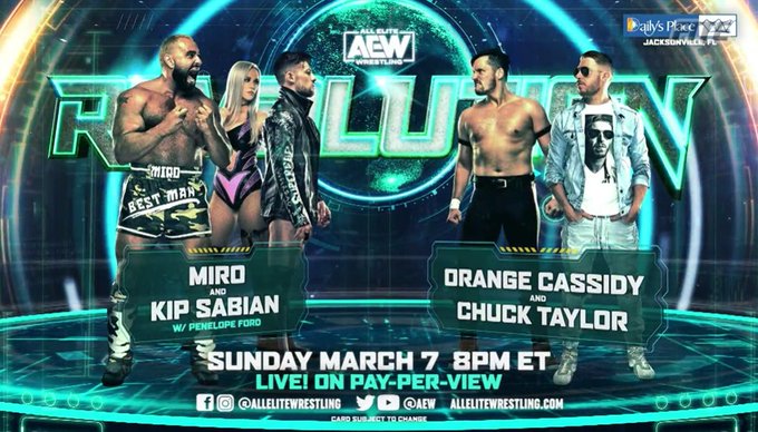 - Miro and Kip Sabian face Orange Cassidy and Chuck Taylor in a good old fashioned tag team match. No crazy stipulations. Just wrestling.