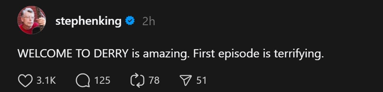 Stephen King had some high praise to share about HBO's upcoming prequel series It: Welcome to Derry, calling the first episode "terrifying."