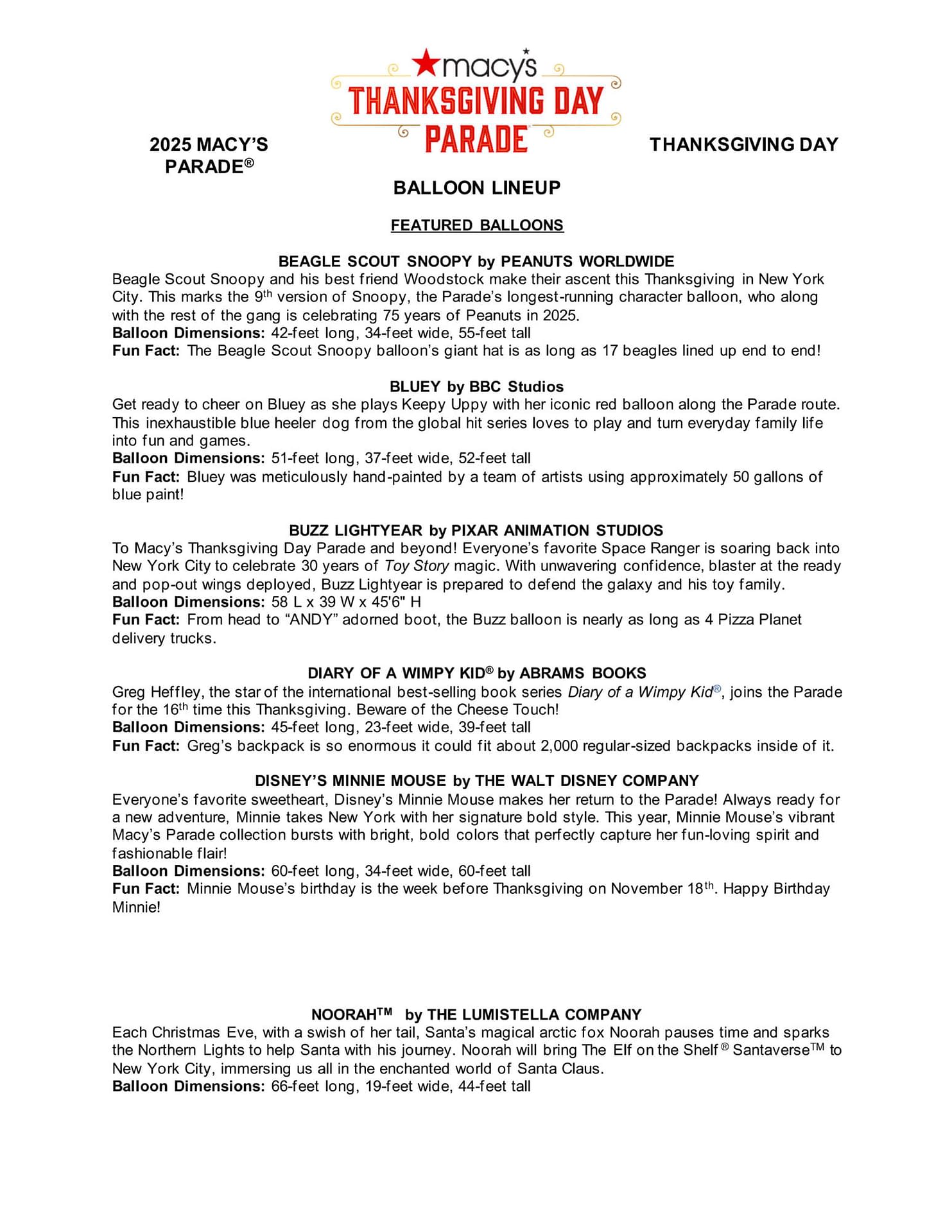 2025 Macy's Thanksgiving Day Parade Balloons