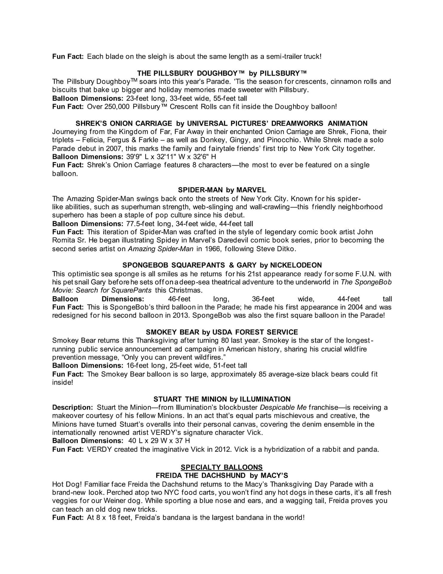 - Exciting new balloons debut: Buzz Lightyear, Pac-Man, Shrek’s Onion Carriage, and Mario join the lineup.