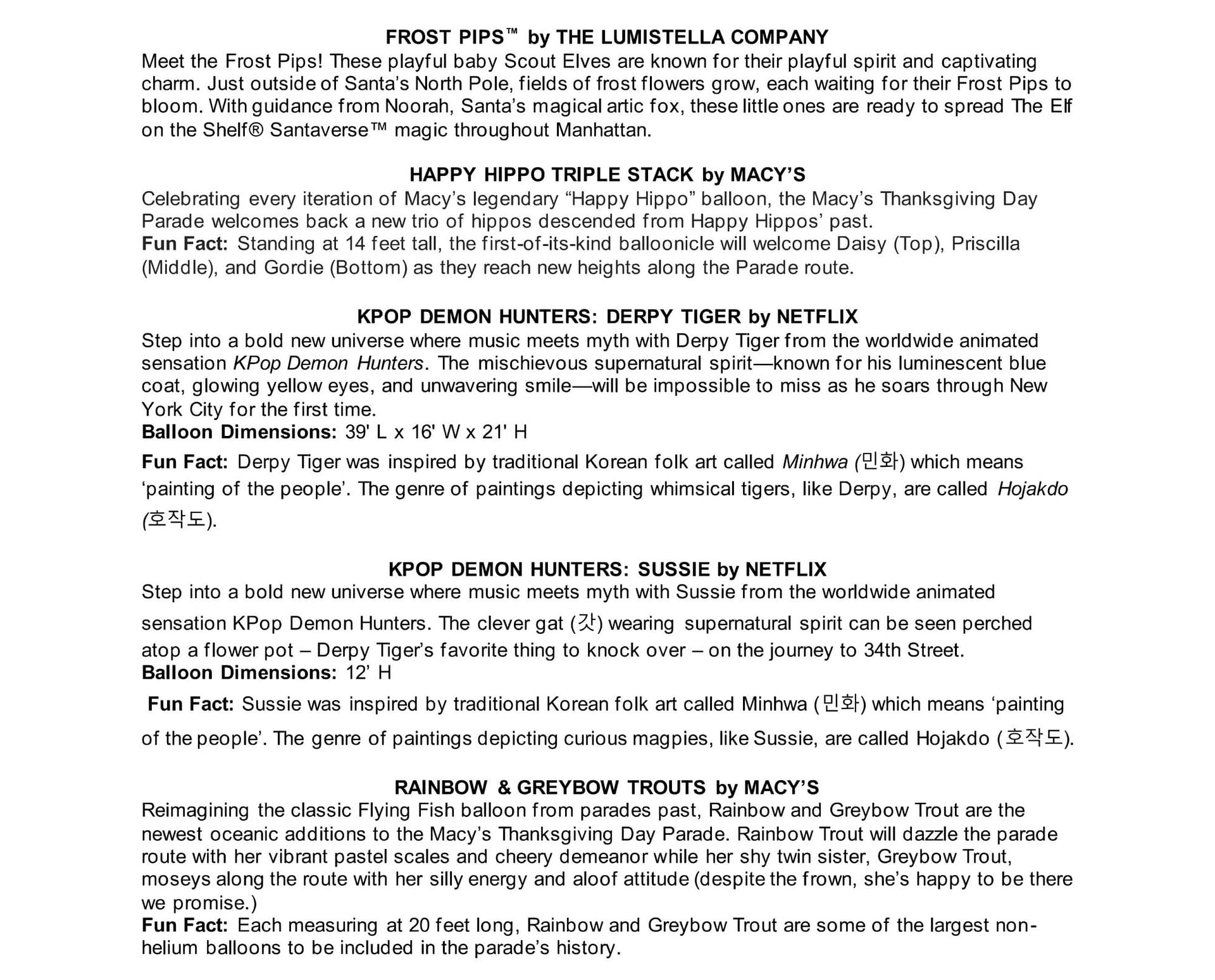 - Netflix’s K-Pop Demon Hunters introduces Derpy Tiger and Sussie as unique parade balloon features.