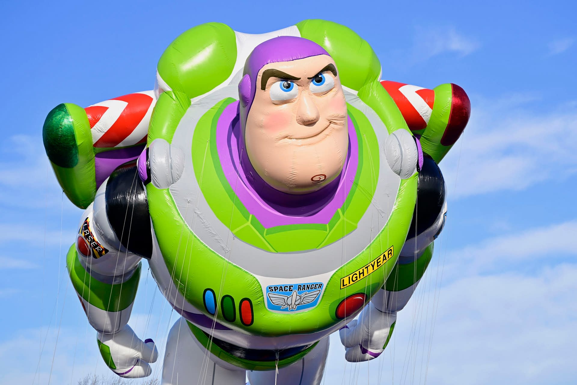 - EAST RUTHERFORD, NEW JERSEY – NOVEMBER 01: Buzz Lightyear by Pixar Animation Studio is seen taking a test flight during the 99th Macy's Thanksgiving Day Parade Balloonfest at MetLife Stadium on November 01, 2025 in East Rutherford, New Jersey. (Photo by Eugene Gologursky/Getty Images for Macy's)