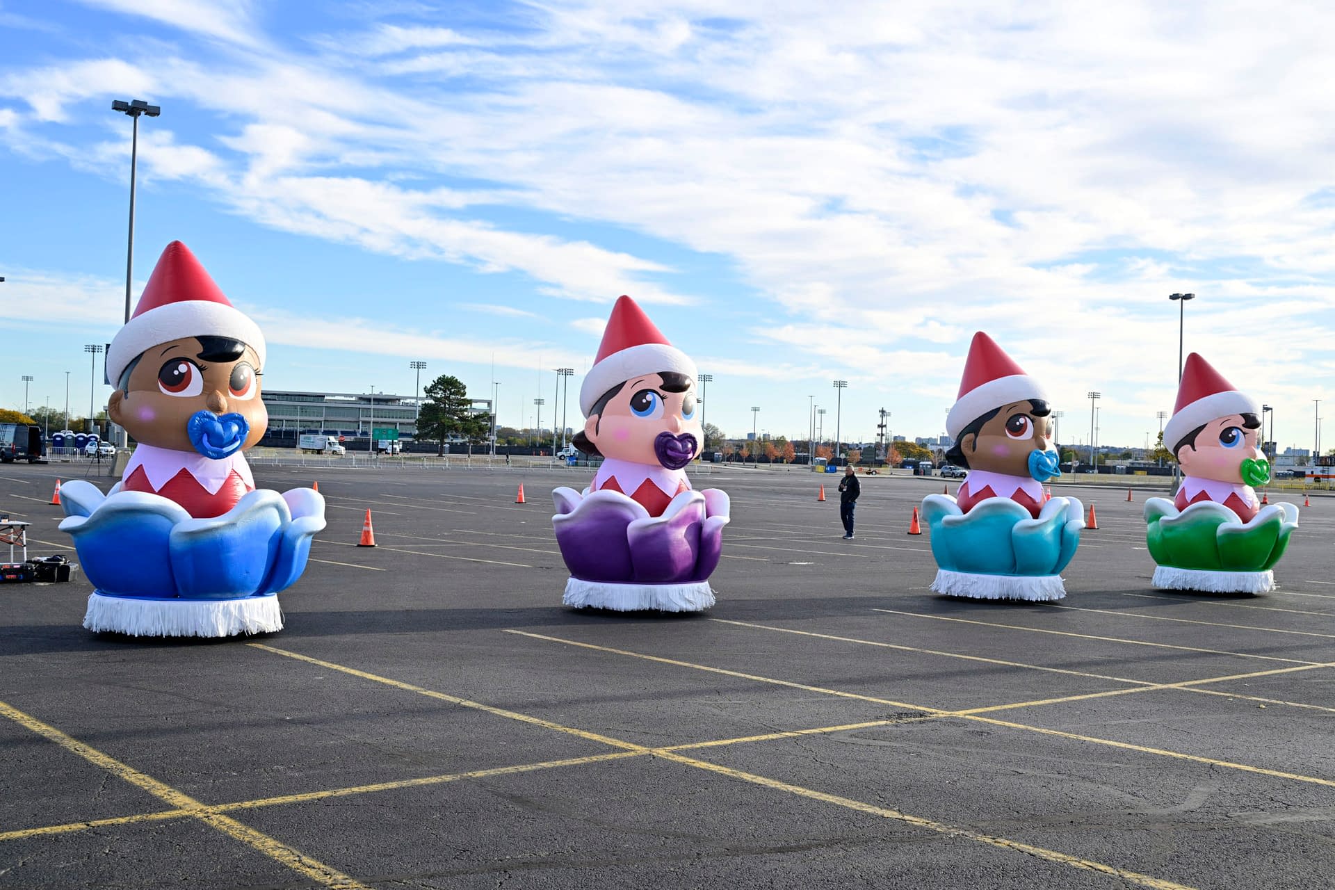 - EAST RUTHERFORD, NEW JERSEY – NOVEMBER 01: Balloons being prepared are seen during the 99th Macy's Thanksgiving Day Parade Balloonfest at MetLife Stadium on November 01, 2025 in East Rutherford, New Jersey. (Photo by Eugene Gologursky/Getty Images for Macy's)