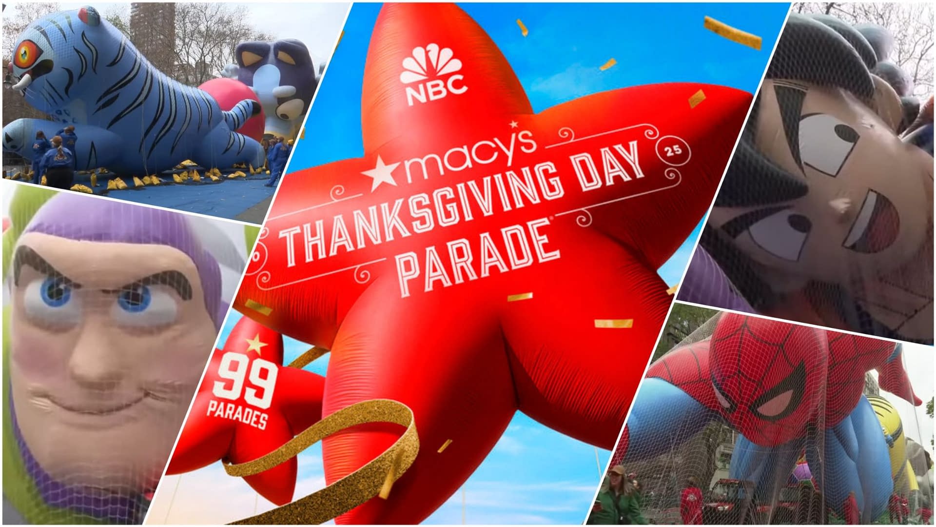 With only hours to go before NBC's preview shows and less than 24 hours before the iconic holiday event gets underway in NYC, there was the not-so-small matter of getting a whole lot of balloons inflated for tomorrow's 99th Macy's Thanksgiving Day Parade. Thankfully, both local and national news outlets were on hand to capture to moment, and we have some of those highlights available for you to check out below. Along with a number of returning favorites, viewers can look forward to seeing new entries, including Buzz Lightyear by Pixar Animation Studios; Pac-Man by Bandai Namco Entertainment America, Inc.; Shrek's Onion Carriage from Universal Pictures' DreamWorks Animation; and Mario by Nintendo. In addition, Netflix's K-Pop Demon Hunters fans can look forward to a mid-sized Derpy Tiger balloon and a Sussie balloonicle.