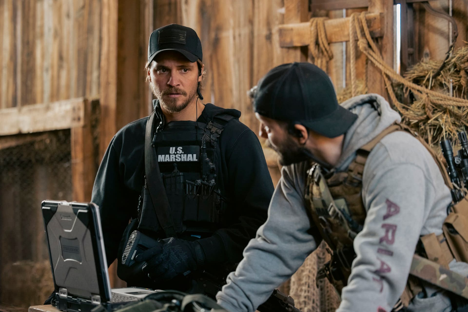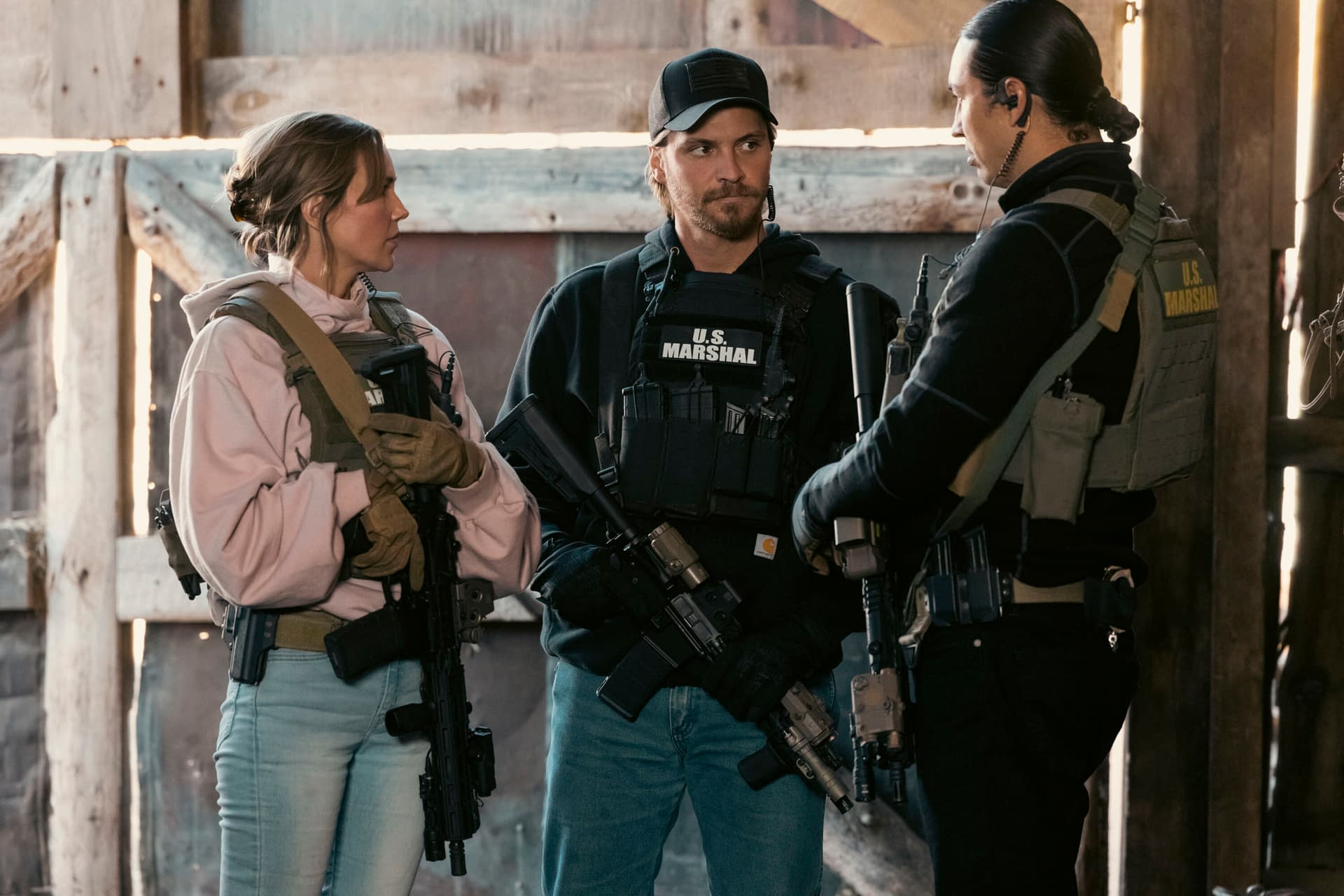 Marshals Season 1 Episode 9: "In Low Places" – With one of their own taken prisoner, the Marshals strategize a risky assault on a paramilitary compound. Outmanned, outgunned, and with time rapidly running out, Kayce leads the team straight into the fire, risking everything to save their teammate. Riley Green returns as Garrett. Written by Tom Mularz & Maggie Schroeder. Directed by Gonzalo Amat.