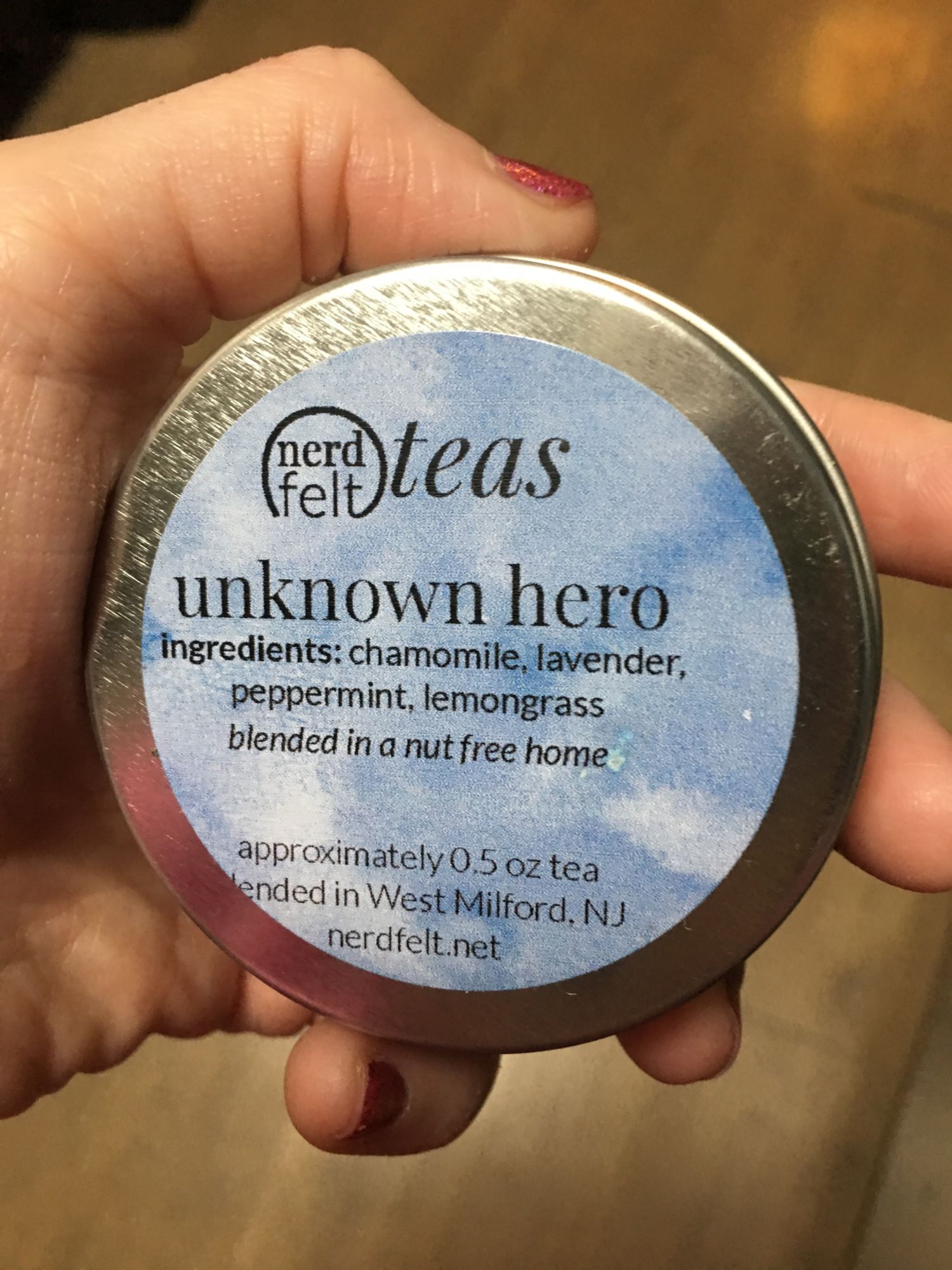 This tea has chamomile, lavender, peppermint, and lemongrass inside, and it smells amazing. The lemongrass and peppermint go well together, and the lavender has a nice soft presence as well. Taste-wise, peppermint is the dominating flavor. This tea would taste great hot or cold, and would be ideal for early mornings. I'm really enjoying how delicious this tea is — it may just be my favorite from Nerdfelt!