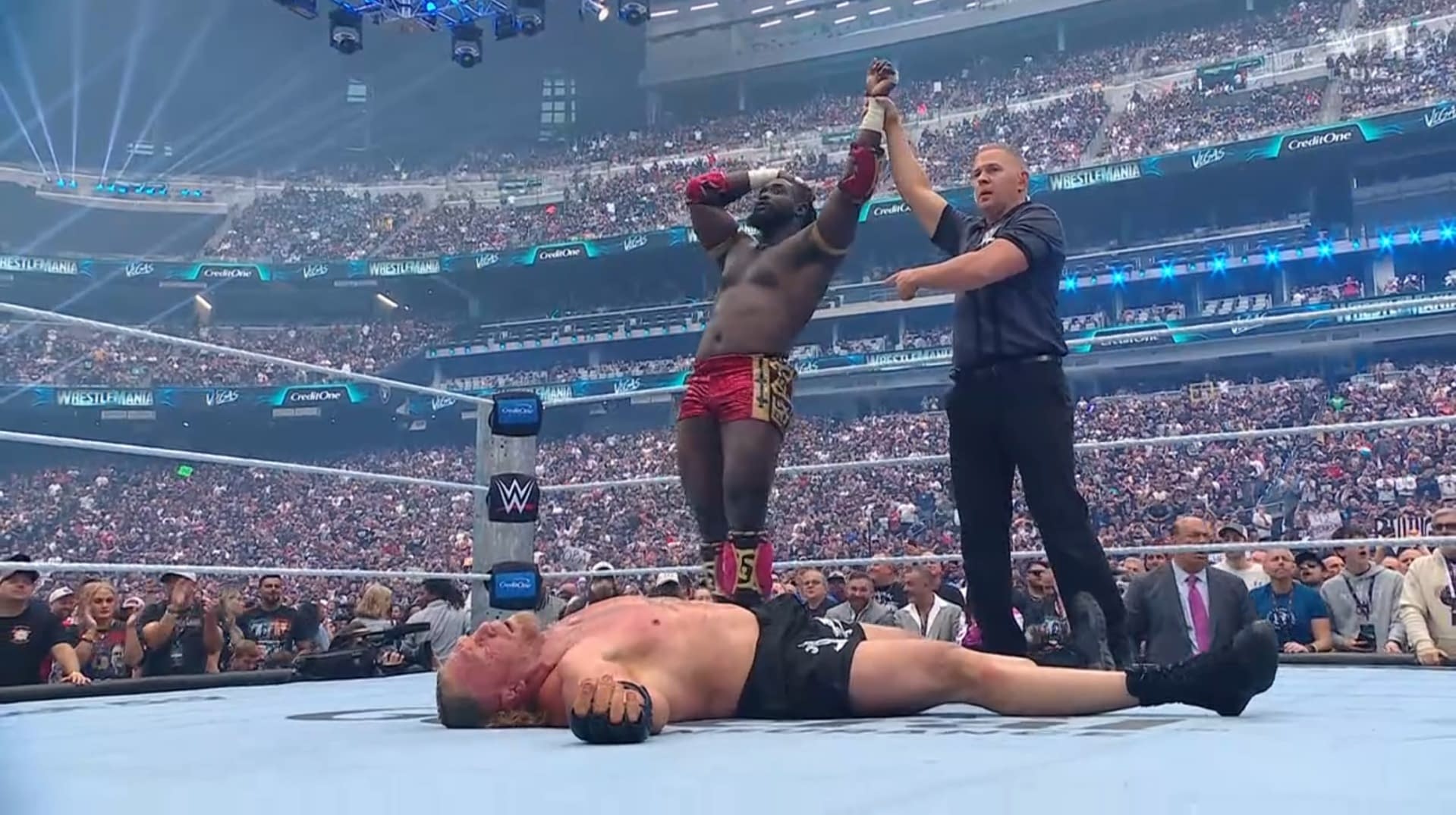 - Brock Lesnar is defeated after facing Oba Femi at WrestleMania.