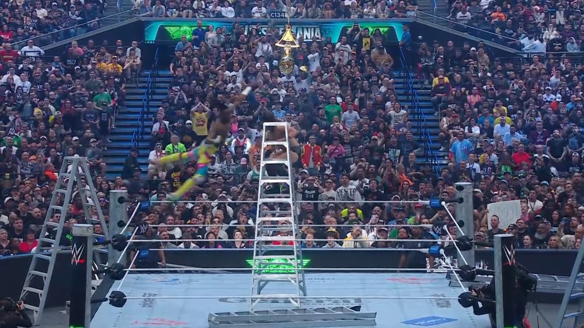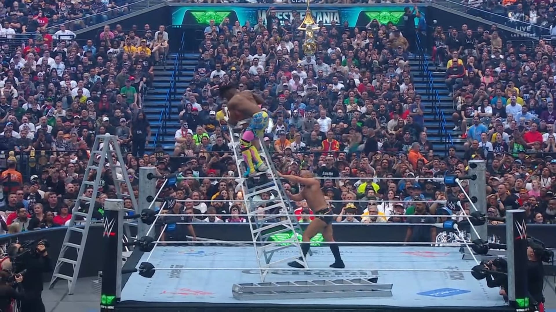 - A scene from the Intercontinental Championship ladder match at WrestleMania