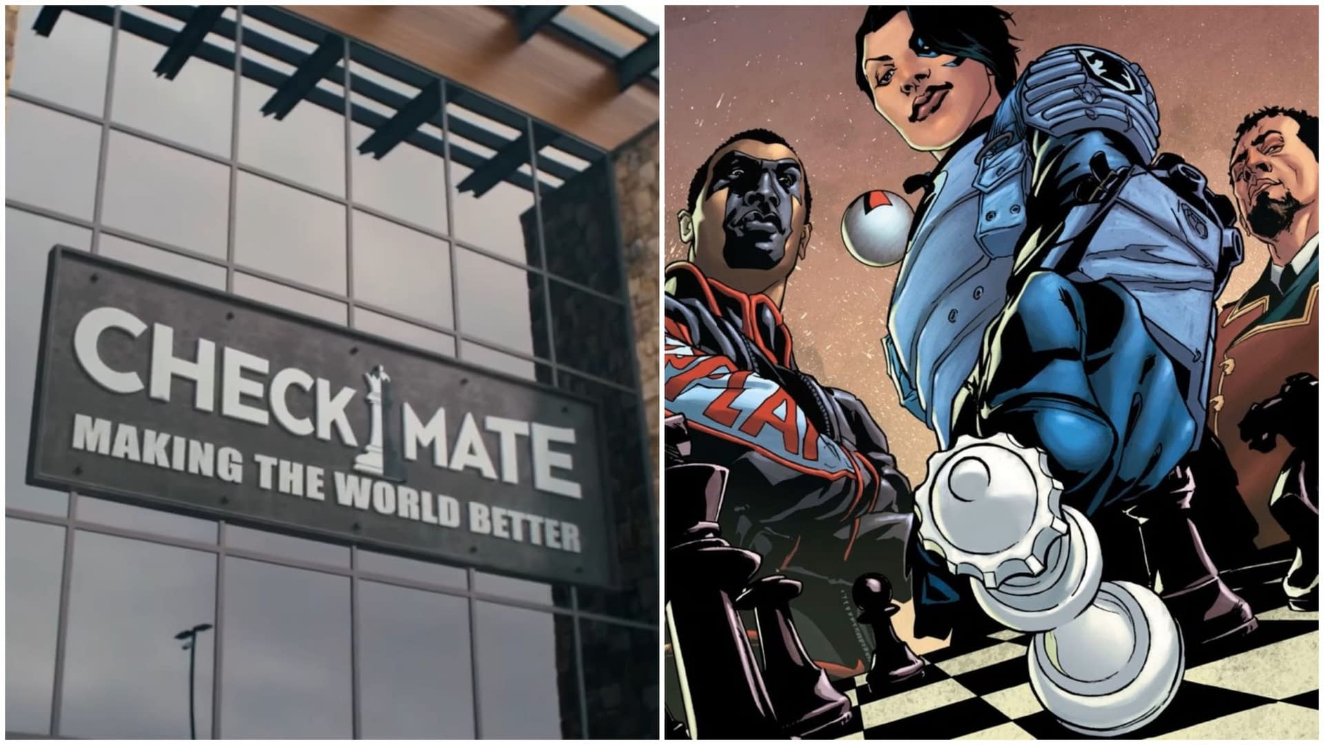 Before Chris gets black-bagged by Flag and dropped off as a "test subject" for the not-very-safe prison planet Salvation, we see Adrian (Freddie Stroma) putting those skids of cash to excellent use. Welcome to Checkmate ("Making the World Better"), a counter-intelligence organization that counts Chris, Adrian, Harcourt (Jennifer Holland), Economos (Steve Agee), Adebayo (Danielle Brooks), Fleury (Tim Meadows), Judomaster (Nhut Le), Bordeaux (Sol Rodríguez), and Eagly. It seems like Flag and Waller will have some problems on their hands, and the DCU has a new intelligence agency in play. And if there was one team that won't stop until Chris is found, it's this one. On the comics side…