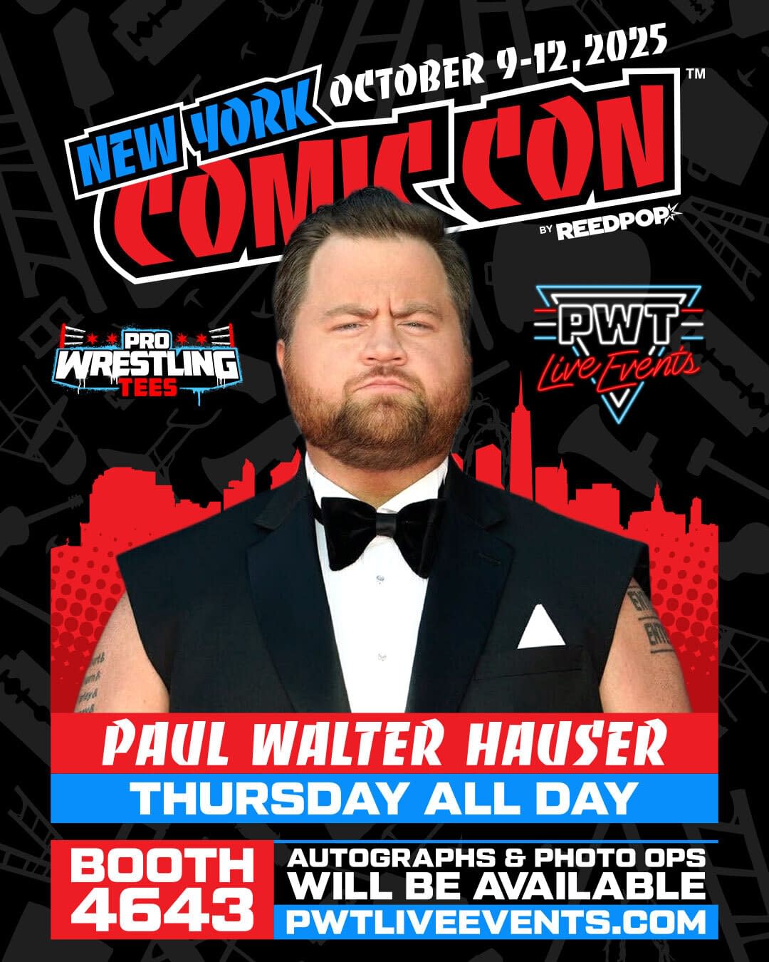 - Join Paul Walter Hauser at the New York Comic Con from October 9-12, 2025, at Booth 4643 for autographs and photo ops.