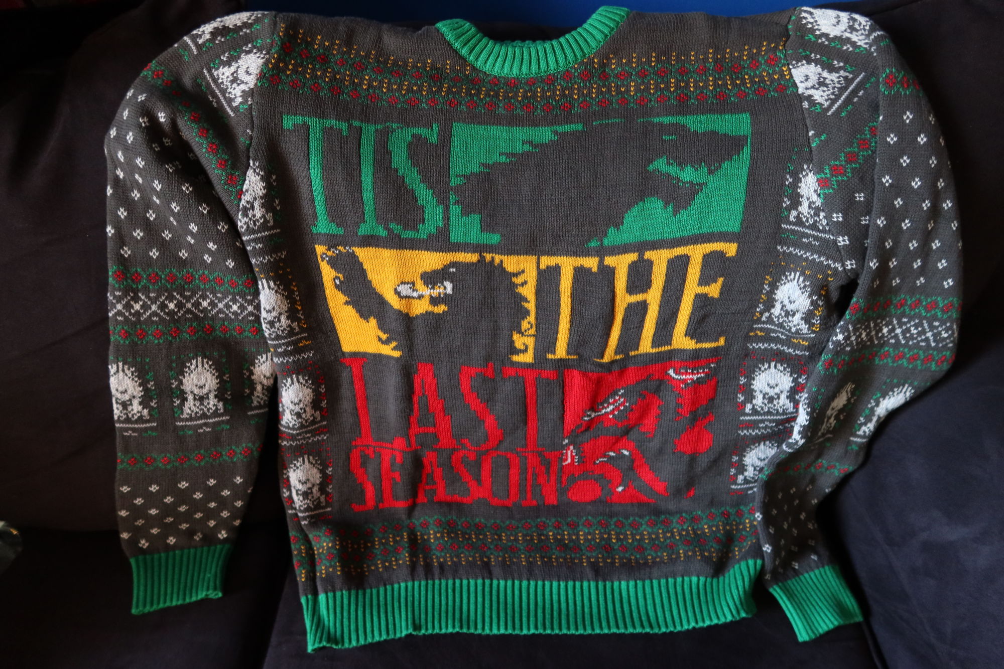 Moving onto clothing, we got a special Game Of Thrones holiday sweater from ILM. Along with some family crests on the front, it comes with the words 'Tis The Last Season. Also, check out the decorative Iron Thrones they added all along the edges and the arms, plus swords with the criss-cross pattern. This is a wonderful sweater that borders between the ugly sweater/brilliant design concept. Plus, it's mighty warm.