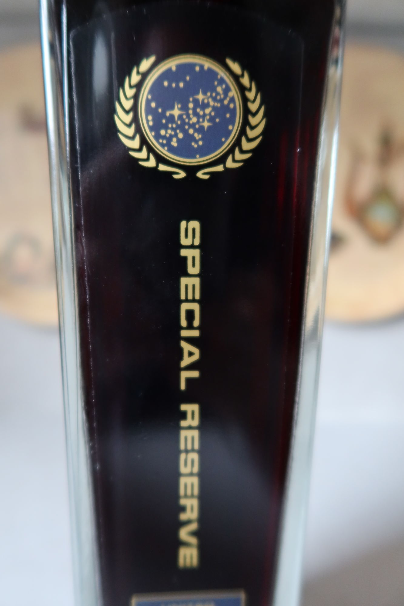 Because often throughout the years until about the past decade, Star Trek merchandise was hit-or-miss. Some of it was really cool like the 3D Chess Set made by the Franklyn Mint, but there's also a lot of garbage out there, too. So when an item like this comes along, there's a part of me as a fan that needs to experience it. We were lucky enough to receive one of the bottles for review, the Special Reserve United Federation Of Planets Old Vine Zinfandel.