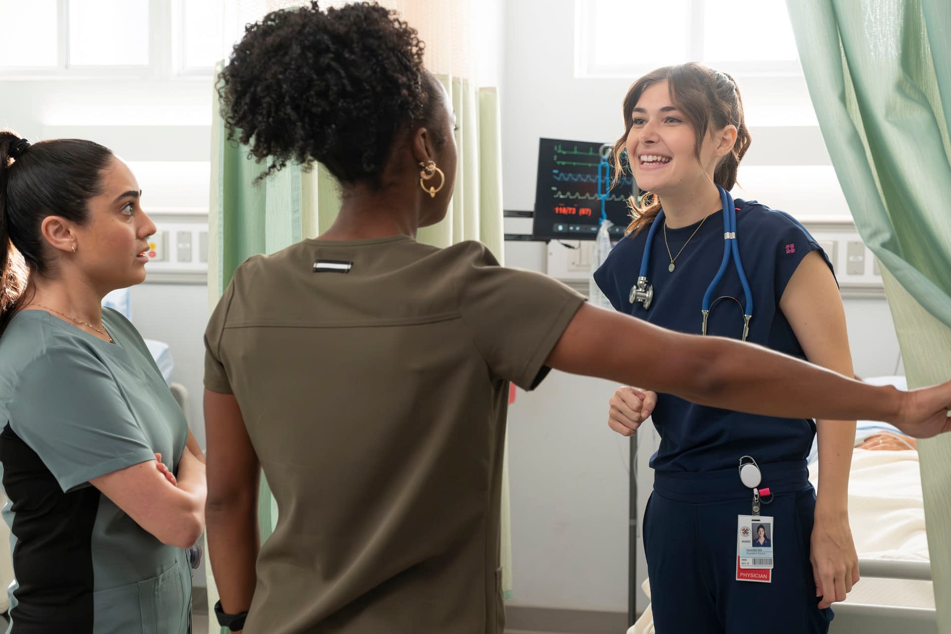 Braff continued, "There we have Sam 'Tosh' [Ava Bunn], who's not only a skilled doctor but a bit of an influencer. There's a handful of these people in the real world, of course, because it's 2025. They go through this intern process and comment on it on social media. A lot of med students and interns want to follow their experience. It isn't something that's overdone. She's not always on her phone and posting, but it is an element of her character that, while going through this training, she is also actively posting. She uses money she gets from sponsorships to pay off her medical bills."