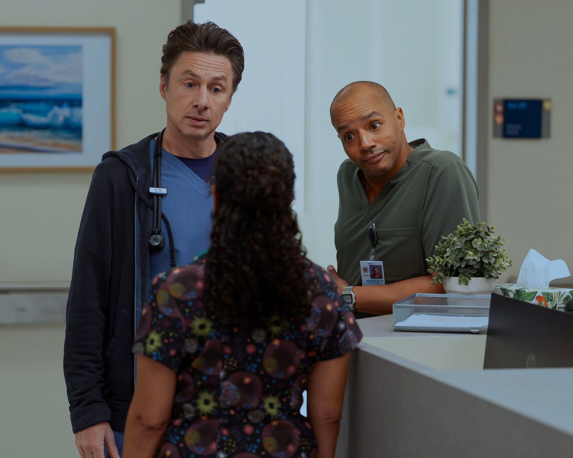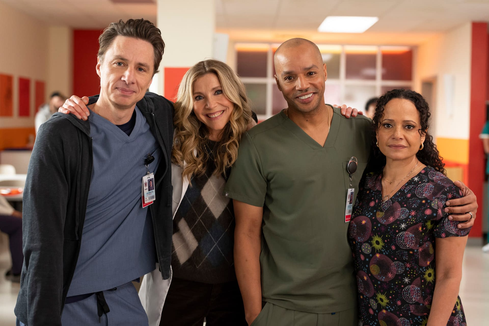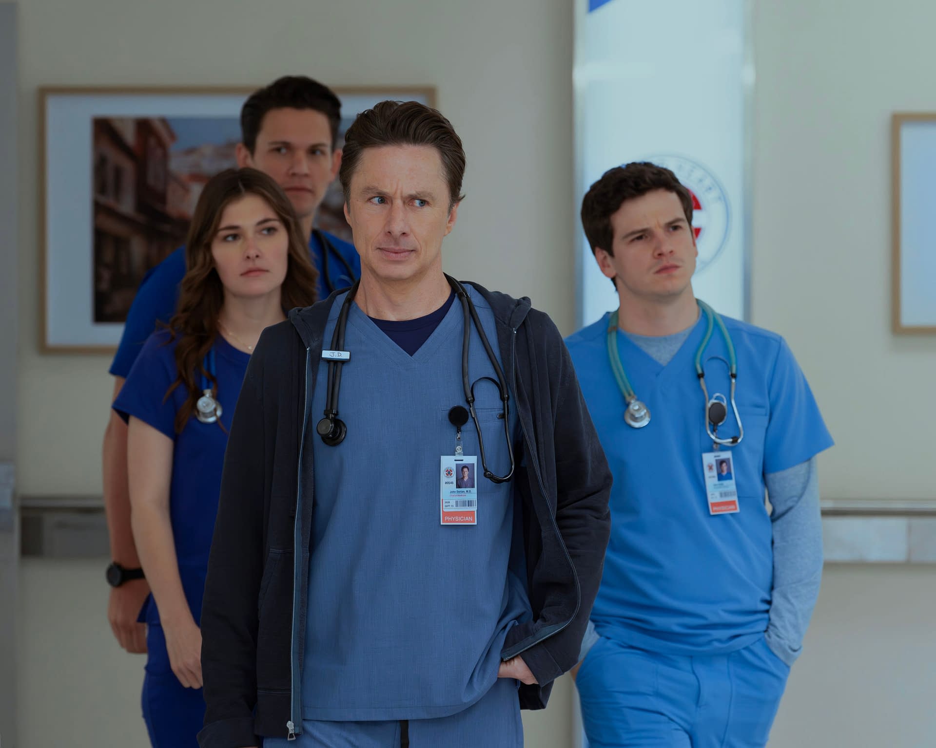 JD and Turk scrub in together for the first time in a long time: Medicine has changed; interns have changed; but their bromance has stood the test of time. Characters new and old navigate the waters of Sacred Heart with laughter, heart, and some surprises along the way. The 30-minute revival comedy series stars Zach Braff as John "J.D." Dorian, Donald Faison as Christopher Turk, and Sarah Chalke as Elliot Reid. Original cast Judy Reyes and John C. McGinley will guest-star as Carla and Dr. Perry Cox, respectively.