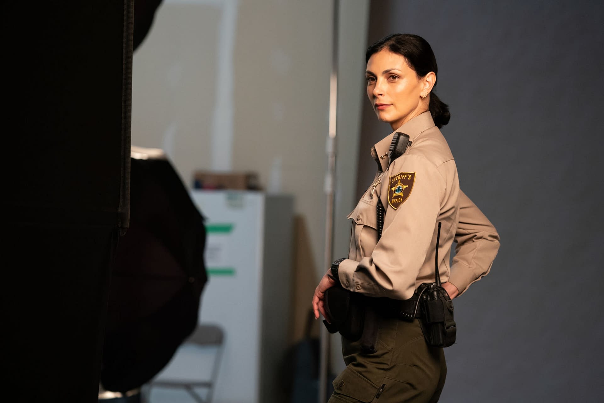 - PIctured: Morena Baccarin as Sheriff Mickey Fox. Photo: Brooke Palmer/CBS ©2025 CBS Broadcasting, Inc. All Rights Reserved.