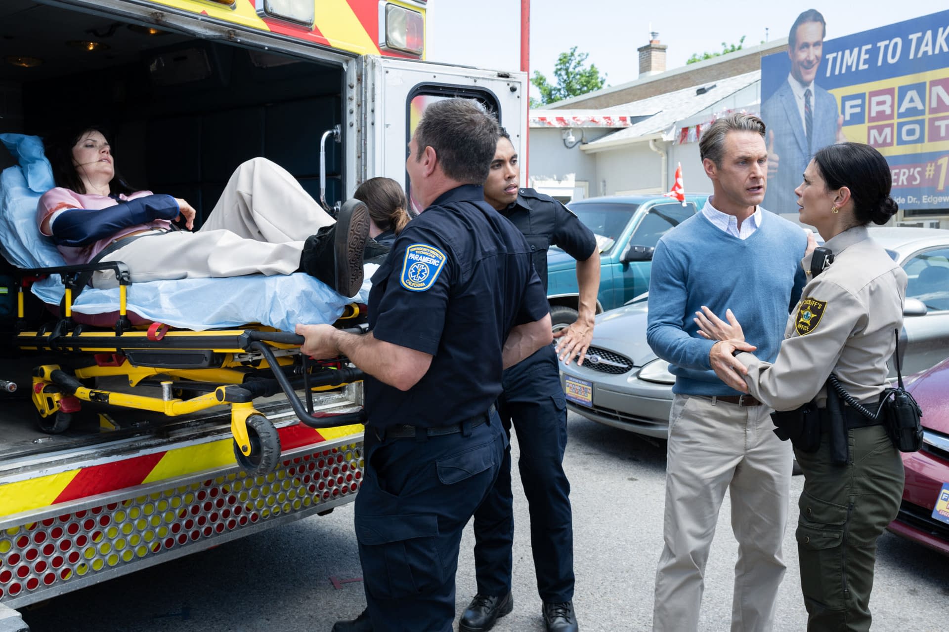 - PIctured: Morena Baccarin as Sheriff Mickey Fox. Photo: Brooke Palmer/CBS ©2025 CBS Broadcasting, Inc. All Rights Reserved.