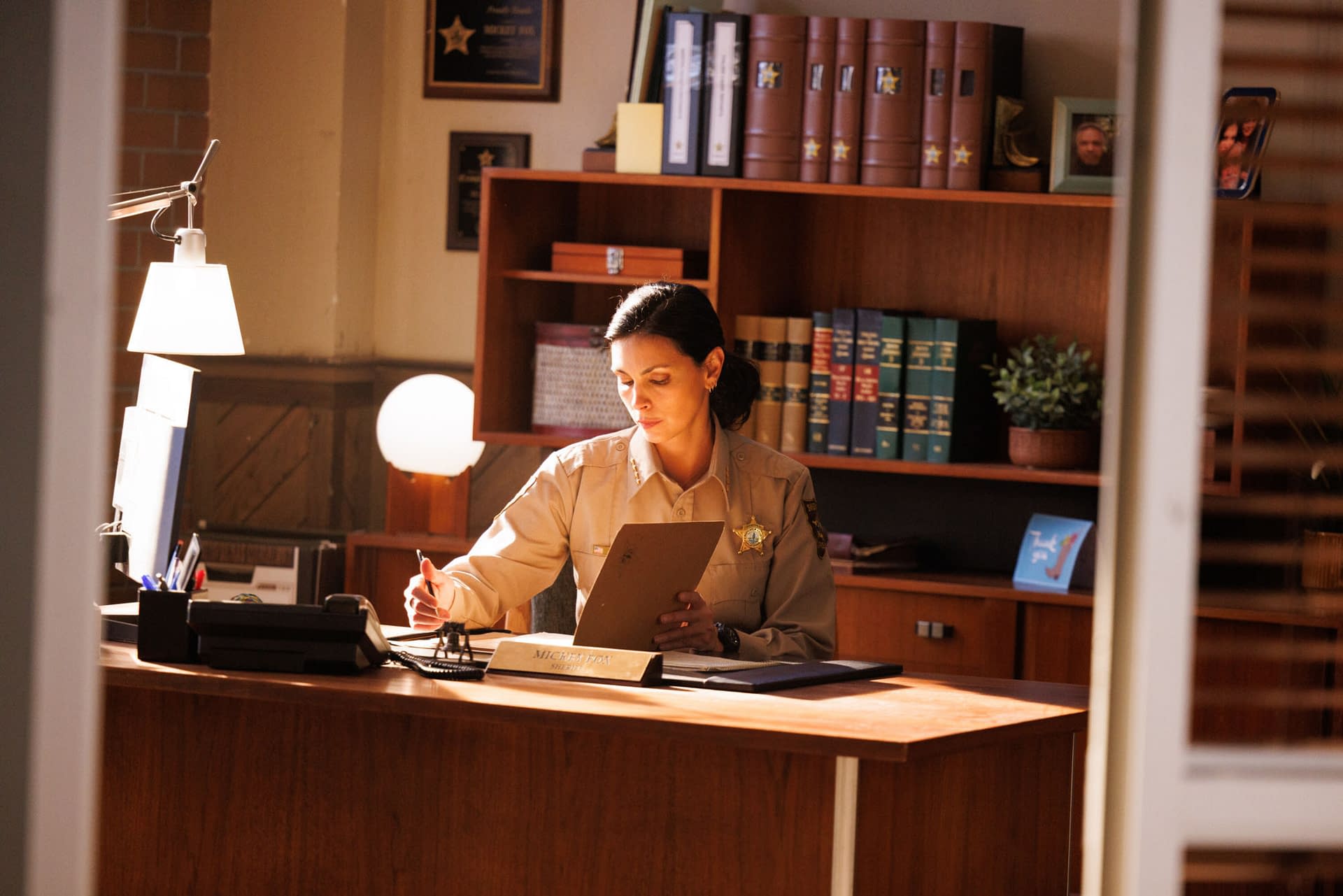 Sheriff Country Season 1 Episode 20: "Mexico" – With her department under scrutiny and tensions rising across Edgewater, Sheriff Mickey Fox faces the fallout from a major investigation that threatens to upend everything she's built. Written by Matt Lopez and directed by Tony Phelan.
