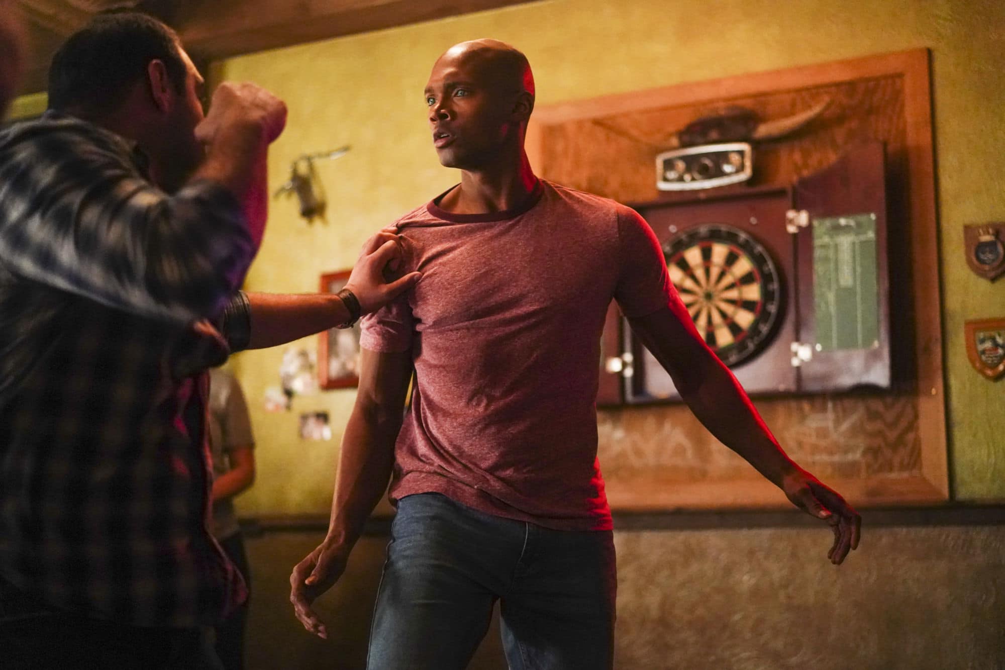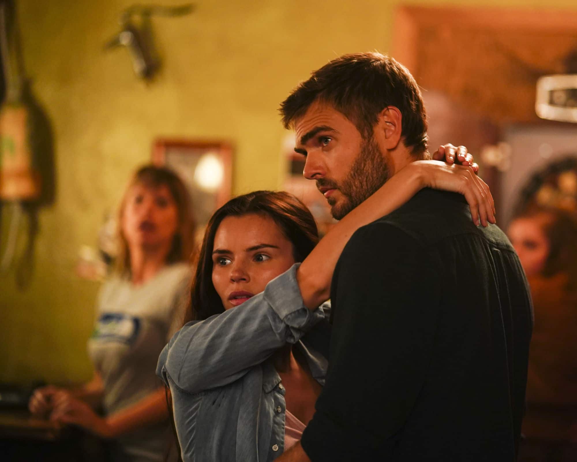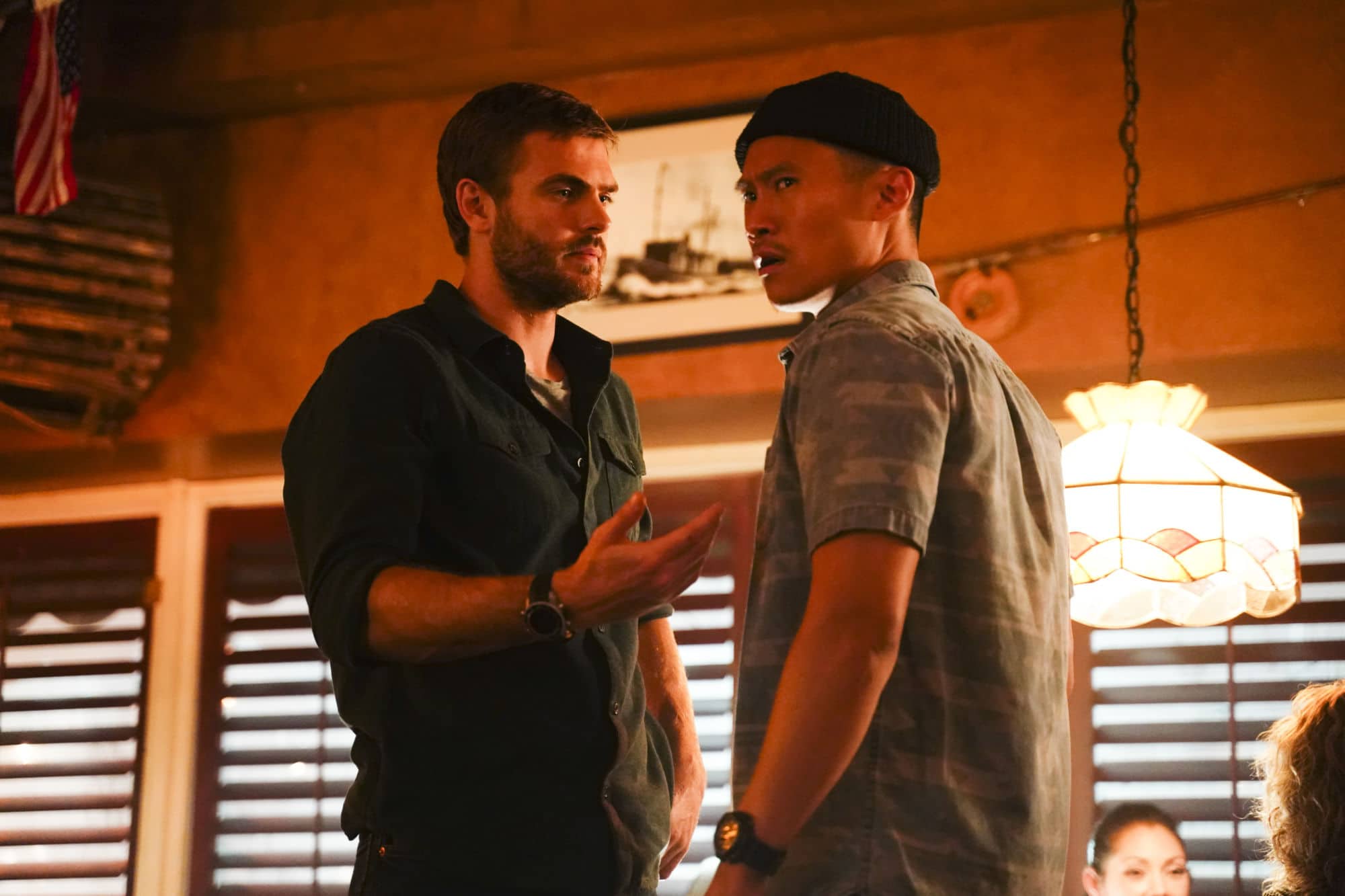 We're a quarter of the way through the second season of Freeform's mermaid-fantasy series Siren from Eric Wald and Dean White, and we think Ben (Alex Roe), Maddie (Fola Evans-Akingbola), and Ryn (Eline Powell) are starting to realize that Bristol Cove isn't New York City: there's only so many places you can hide a group of mermaids you don't want found. It doesn't help when said mermaids start feeling a little restless… so let's take them out to a bar!