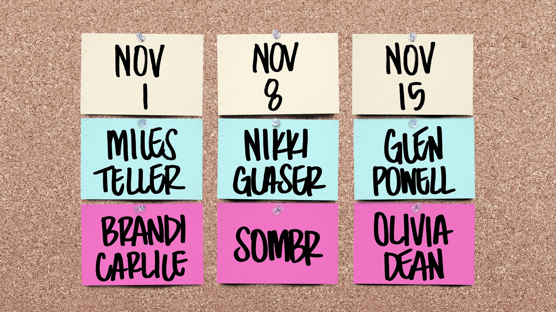 NBC's Saturday Night Live released its Season 51 November lineup, including Miles Teller, Nikki Glaser, Glen Powell, Olivia Dean, and others.