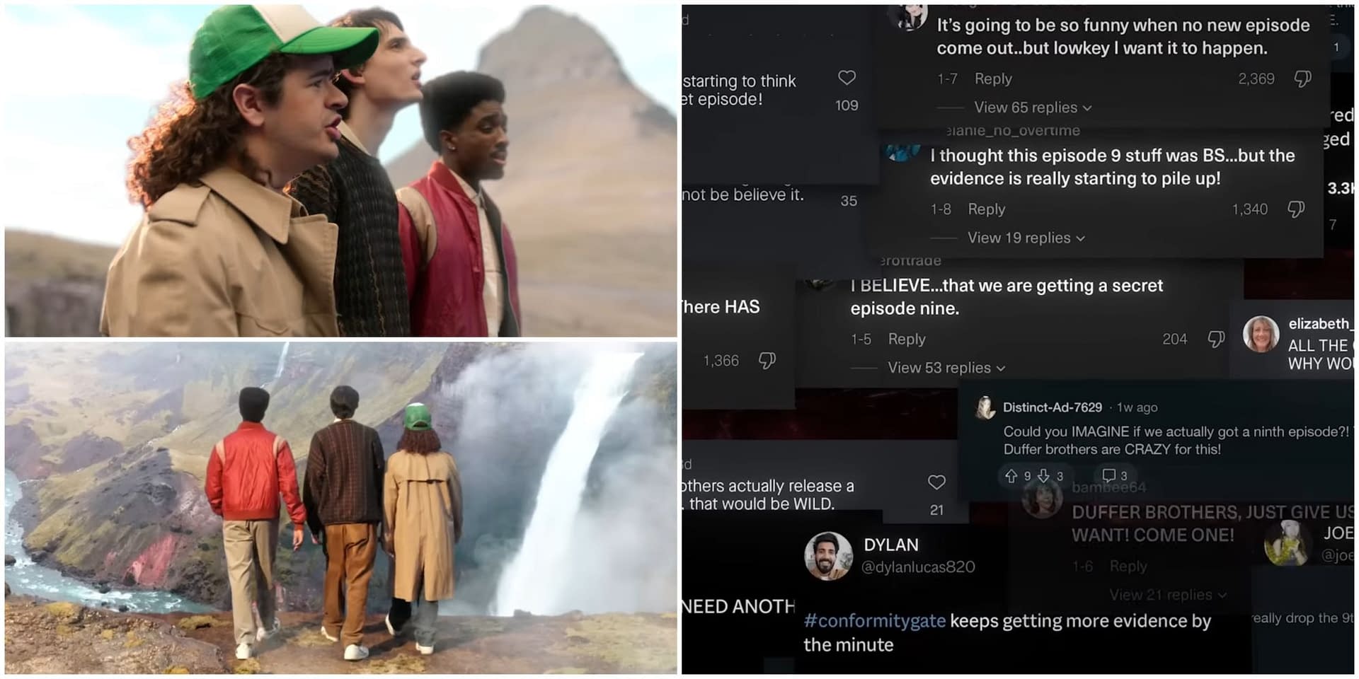 - The skit pokes fun at #ConformityGate and online conspiracies about missing Stranger Things episodes.