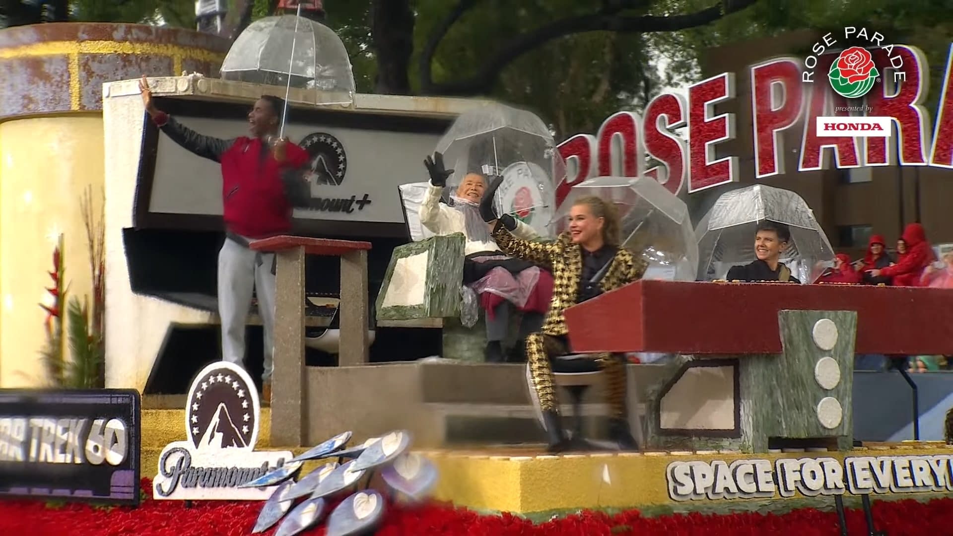 Check out George Takei, Rebecca Romijn, Tig Notaro, and Karim Diané on the Star Trek 60th Anniversary float during the 2026 Rose Parade.