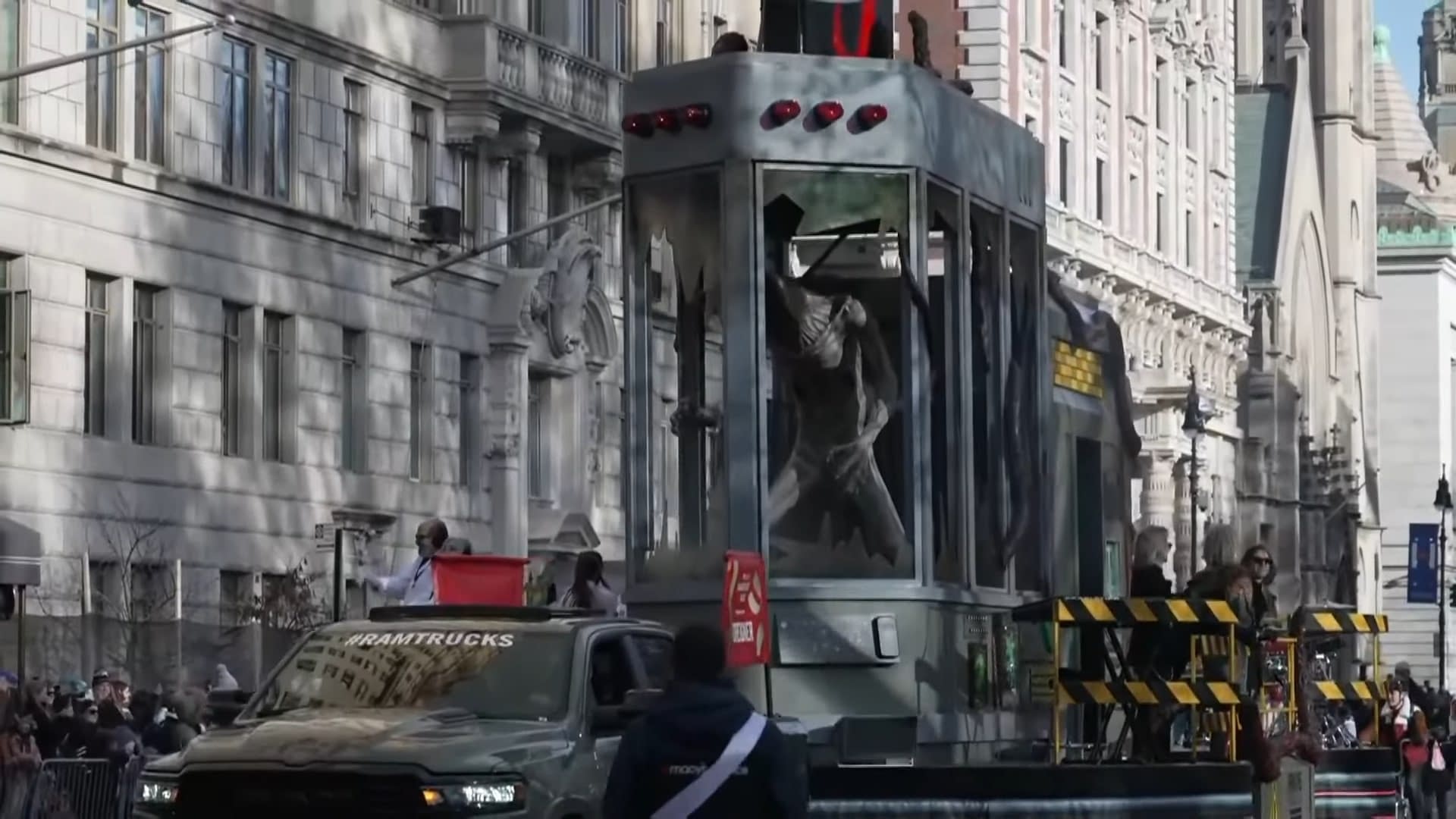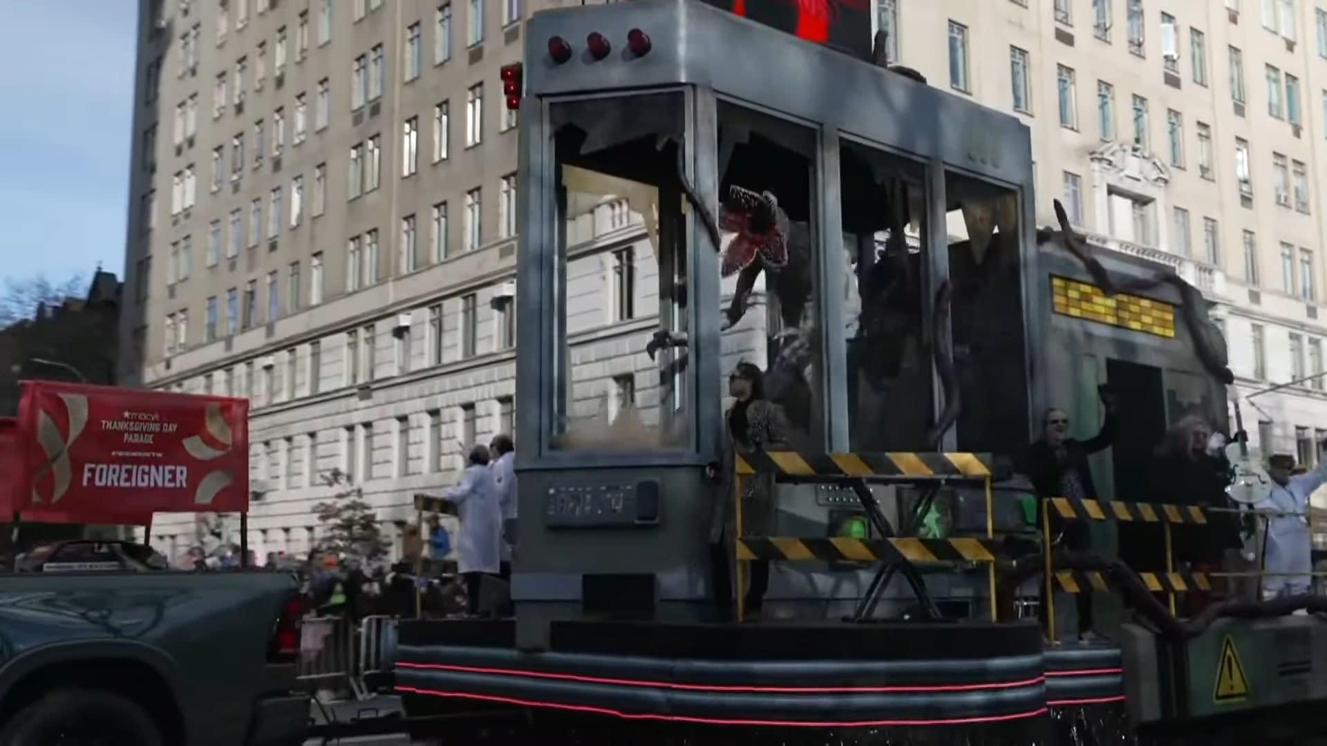 Spotlighting the Hawkins National Laboratory, the float features a containment device housing an eight-and-a-half-foot-tall Demogorgon puppet (with work stemming from Tony Sarg). The float included lighting and smoke effects, with easter eggs from the series throughout (see how many you can spot). In addition, fans were treated to a performance by the band Foreigner, who played "Cold as Ice" during their appearance on 34th Street. You can check out video above and below, and here are some images from the event: