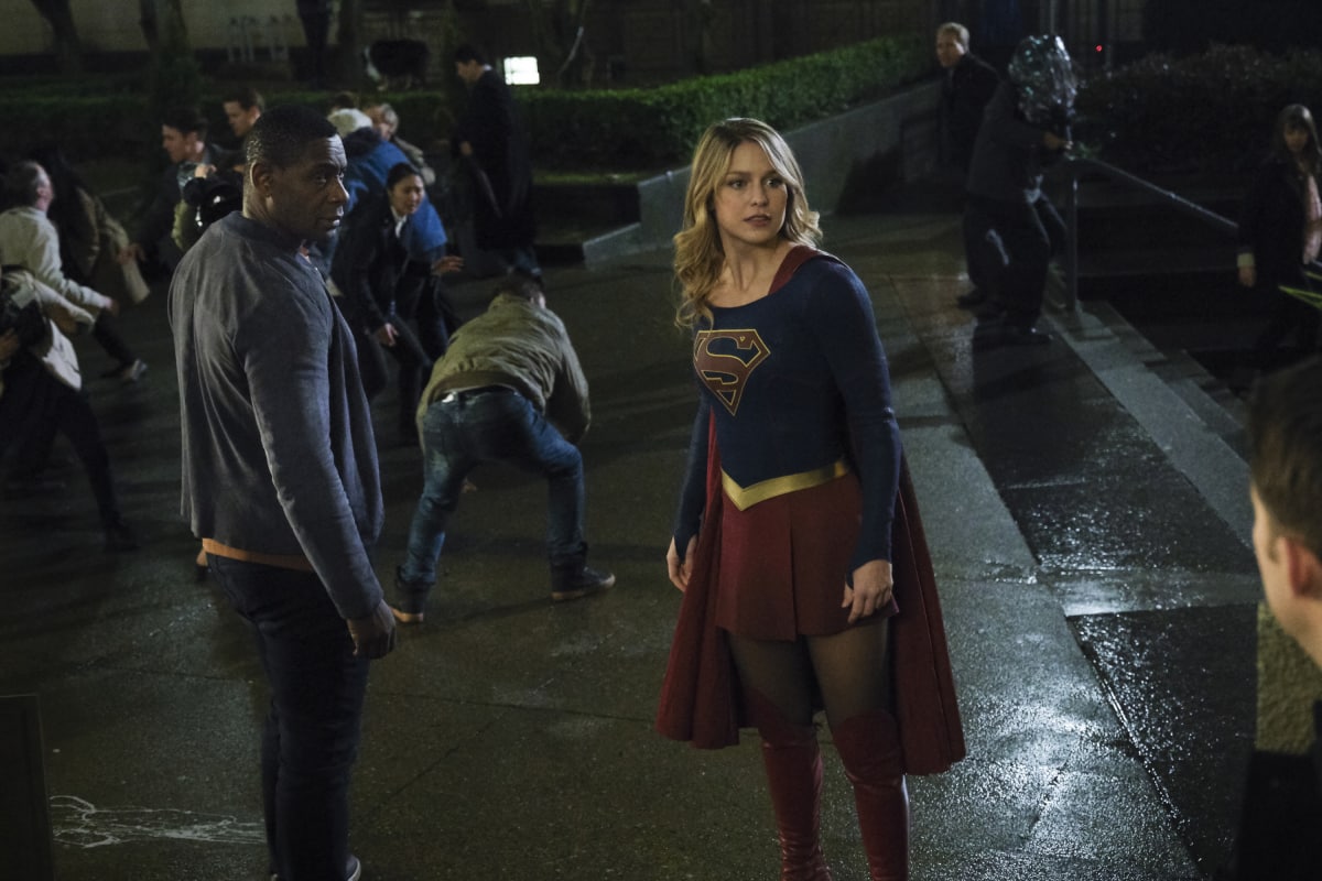 - Supergirl — "Stand and Deliver" — Image Number: SPG414B_0297b.jpg — Pictured (L-R): David Harewood as Hank Henshaw/JÃÂonn JÃÂonzz and Melissa Benoist as Kara/Supergirl — Photo: Jeff Weddell/The CW — é 2019 The CW Network, LLC. All Rights Reserved.
