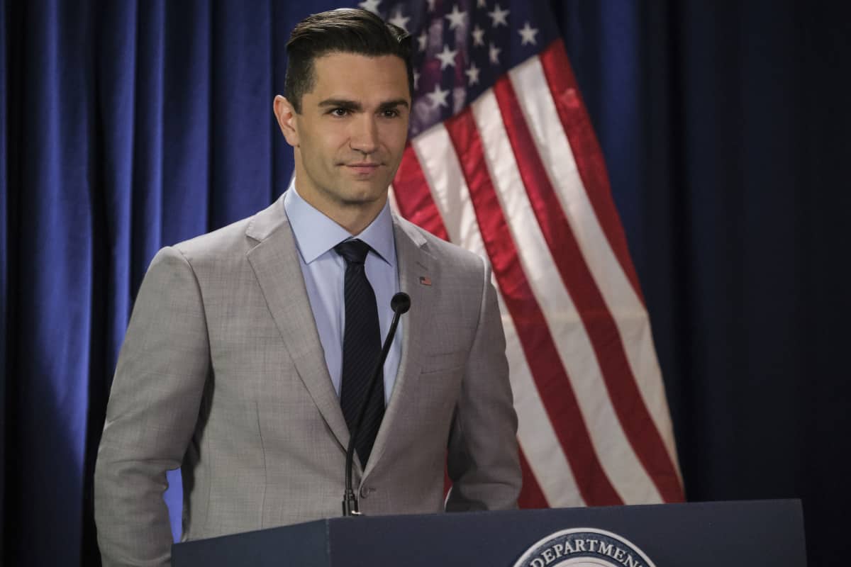 - Supergirl — "Stand and Deliver" — Image Number: SPG414A_0119b.jpg — Pictured: Sam Witwer as Ben Lockwood/Agent Liberty — Photo: Jeff Weddell/The CW — é 2019 The CW Network, LLC. All Rights Reserved.