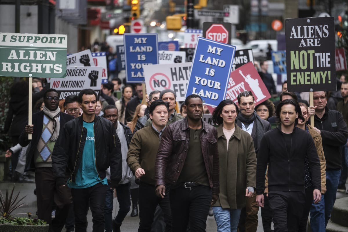 Supergirl s04e14 "Stand and Deliver": SUPERGIRL TAKES A STAND — Between Ben Lockwood's (Sam Witwer) new push to stir up the anti-alien movement and the Elite's desire to target Lockwood and his minions, Supergirl (Melissa Benoist) is concerned about the safety of the American people — both human and alien. When Lockwood organizes a rally, the aliens decide to peacefully protest. Brainiac (Jesse Rath) and J'onn (David Harewood) join the alien march while Supergirl and Dreamer (Nicole Maines) patrol to keep everyone safe.
